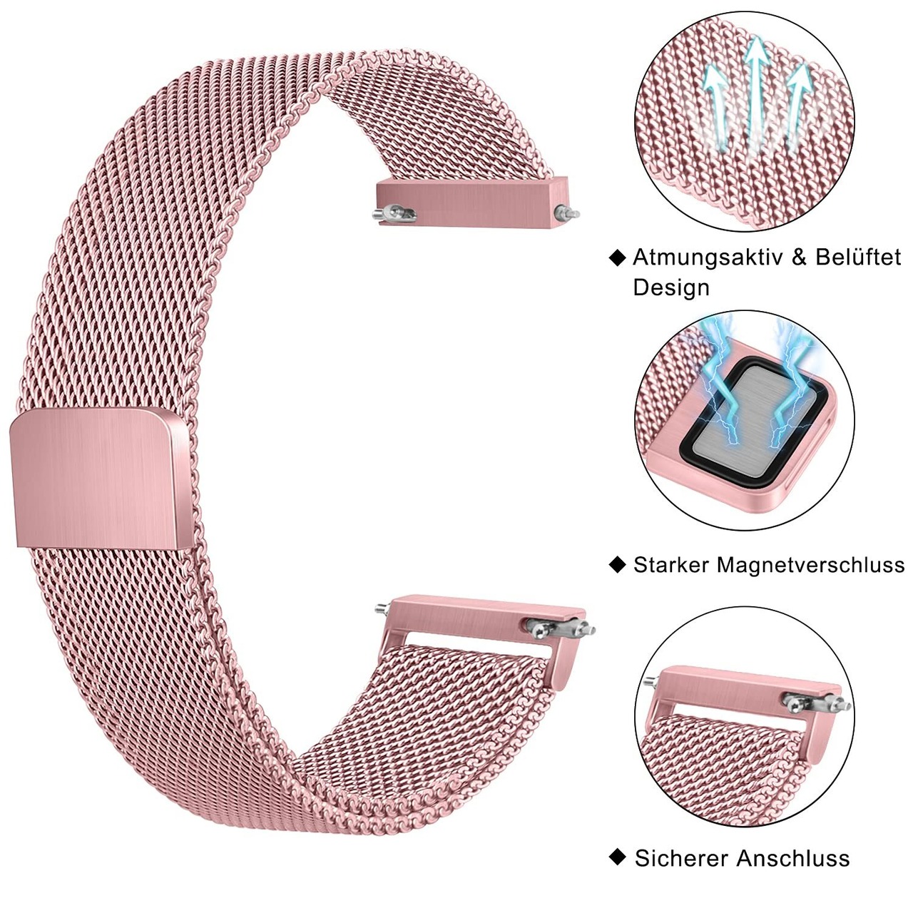[Amzpas] 20mm バンド for Amazfit GTS 4 Mini/GTS 4/GTS 3/GTS 2, Bip U Pro/Bip 3/Bip 3 Pro バンド 交換用ベルト ステンレス製金属 ンバンド (ローズレッド)