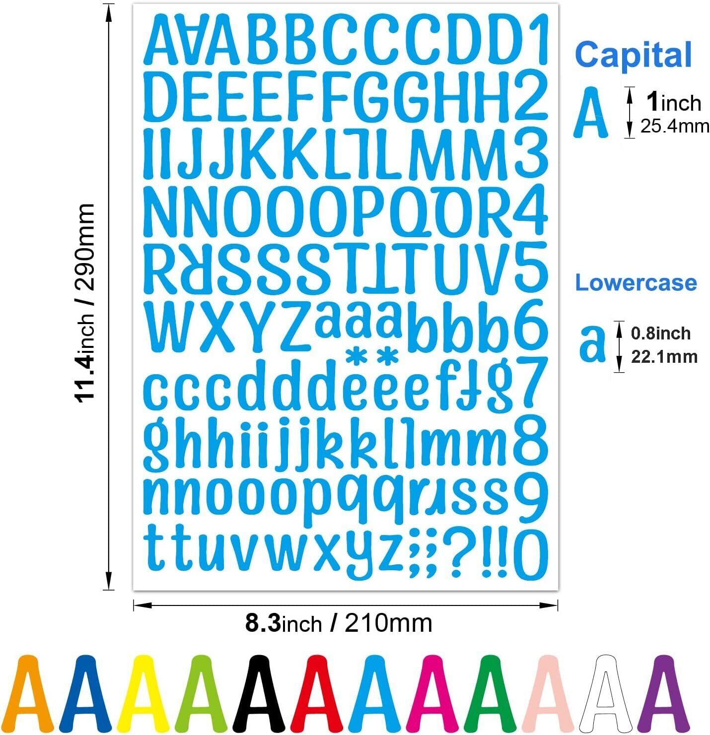 カラフルなレターステッカー:パッケージには、24個のレターステッカー(赤、水色、オレンジ、モスグリーン、ダークブルー、モーブ、紫、黄色、白、黒、ピンク、エメラルドグリーン)、12色、各色2個、26文字が含まれています 大文字と小文字、およびアラビア数字のステッカー、それぞれ11.4 x 8.3インチ、文字サイズ:1インチ。