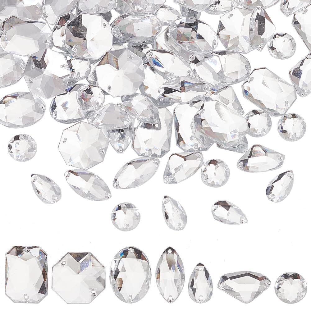 PH PandaHall 約70個 7種 ビジュー パーツ 2穴 アクリル ラインストーン 縫製フラットバック カボション デコ素材 手芸用 ジェリー用 アクセサリーパーツ装飾材料 クリア