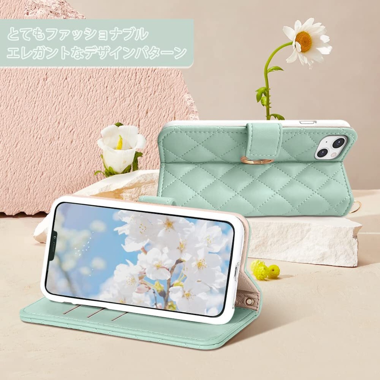 MAGICASE FOR iPhone 14 ケース 手帳型 チェック柄 刺繍 iPhone14 手帳型ケース 人気 リング付きアイフォン 14 ケース 手帳型 カバー カード収納 かわいい スタンド機能付き 全面保護 衝撃吸収 携帯電話ケースiphone あいほん 14 ケース 手帳型 財布型 レディース 上品 美しい アイフォン14 手帳型 実用 贈り物(6.1 inch)グリーン
