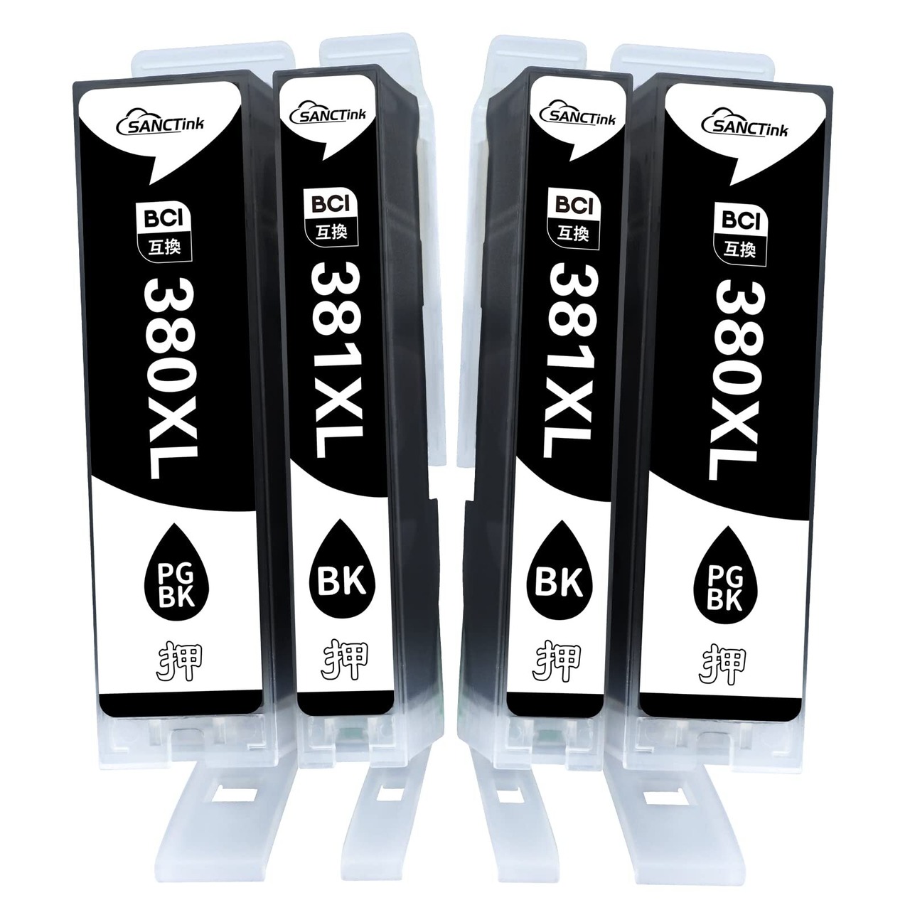 【SANCTink】Canon 381 380 XL BK PGBK 互換インク キャノン用 BCI-381XL BCI-380XL 黒 4本セット 大容量 対応機種:PIXUS TS6330 TR8630 TR9530 TS7430 TR703 TS8130 8230 8330 8430 TS6230 TS6130 TR8530 TR7530 TS7330 TS9130 TS703 プリンター