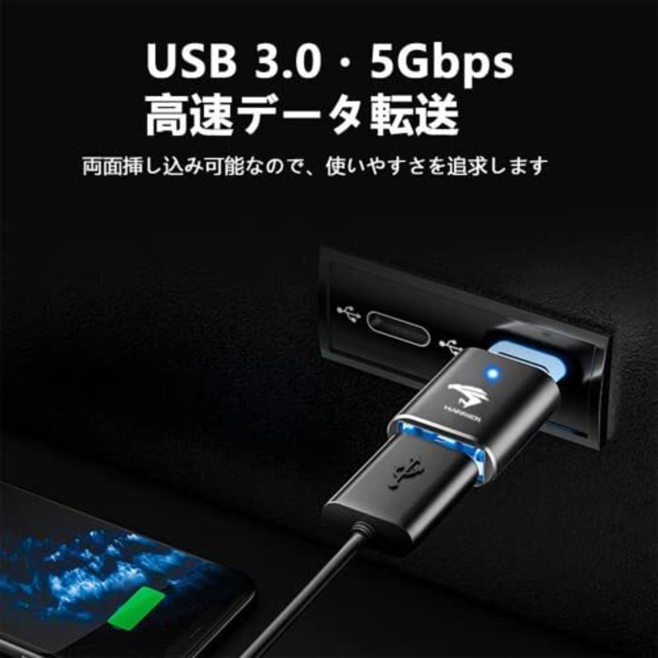 Haoshilianfaトヨタ ハリアー80系 USB 変換アダプタ harrier80 専用アクセサリー type-cからusb変換 急速充電 高速データ転送 設定不要 操作不要