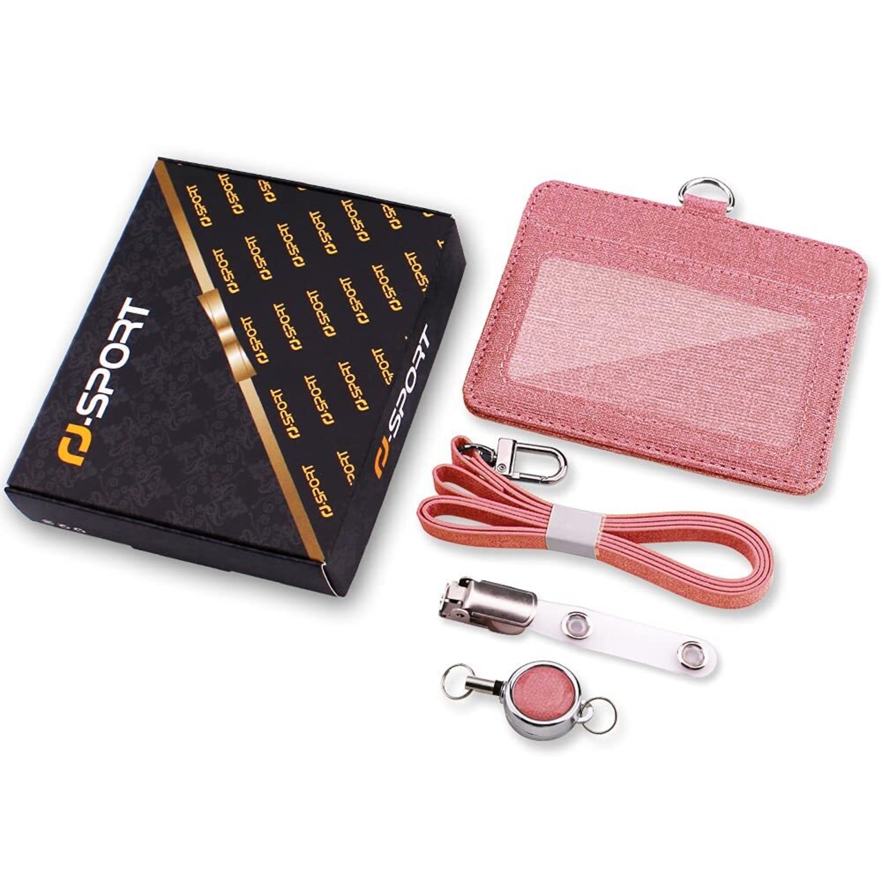 IDカードホルダー - 横型&縦型 IDカードケース ネームホルダー 両面用 名札 パスケース 胸ポケットクリップ&伸縮リール式 クリップストラップ付き(横型ピンク)