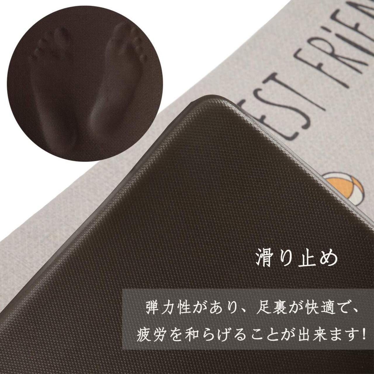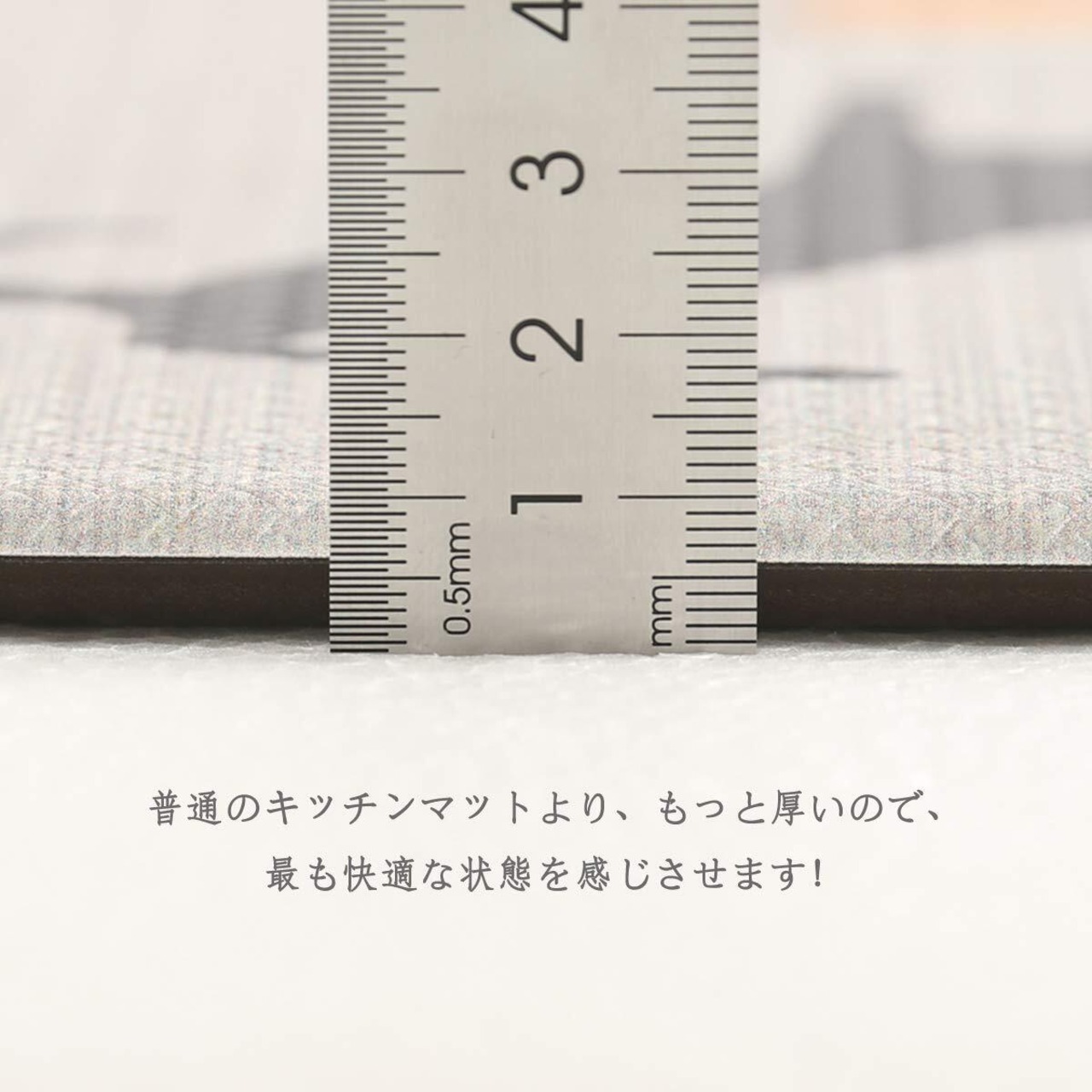 【厚いPVC】 足が疲れにく設計、もちもちの踏み心地でクッション性が高く台所マットです。長時間の立ち仕事も疲れにくい。このマットは素足でも、スリッパを履いたままでもいいです。物が落下しても衝撃を吸収し、床をキズやヘコミから守ります。