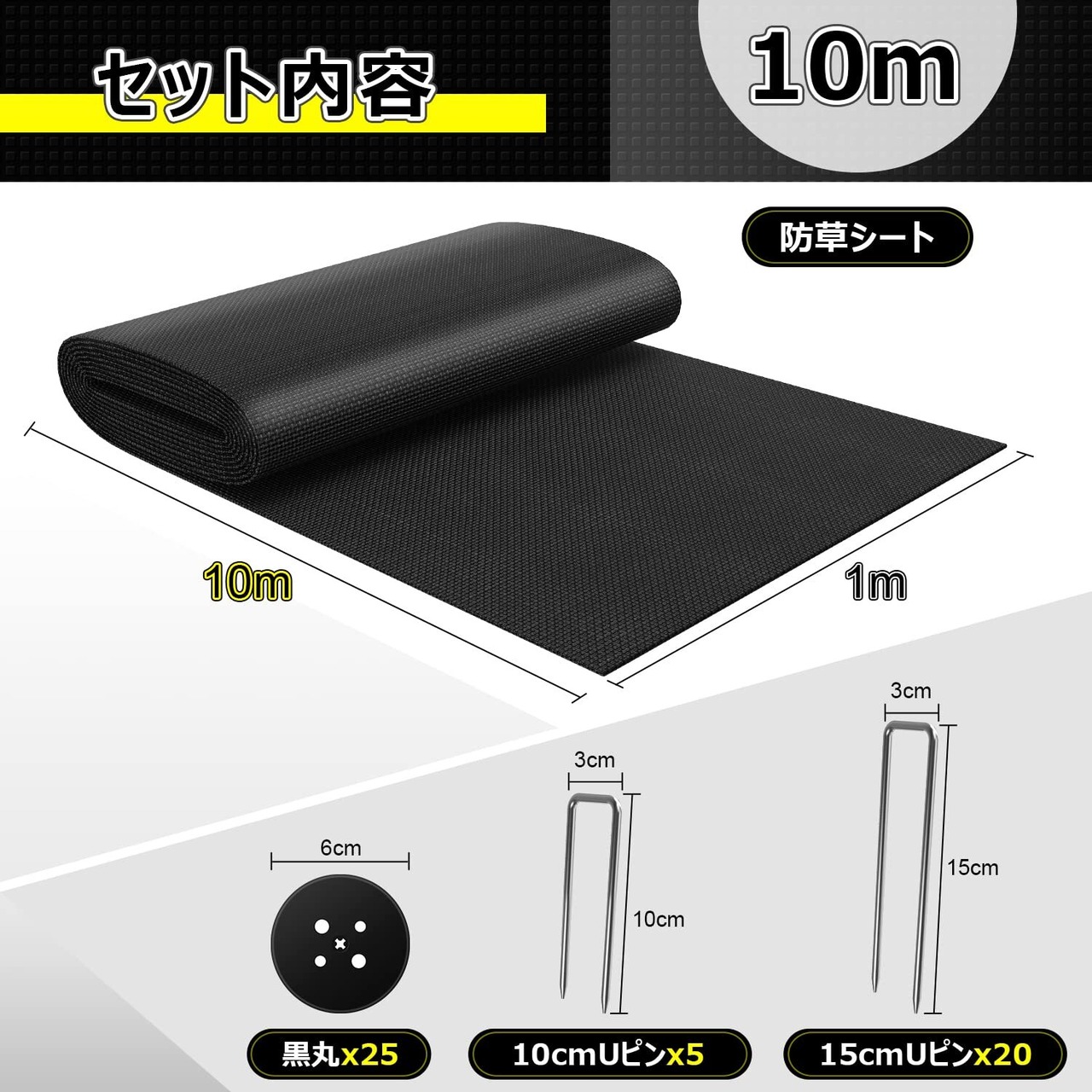 Sumeriy 防草シート 1m×10m 厚手 高密度 高透水 高耐久 除草シート 雑草対策 庭 通路 物干し場 ウッドデッキの下など 雑草防止 固定ピン25本と黒丸25枚付き