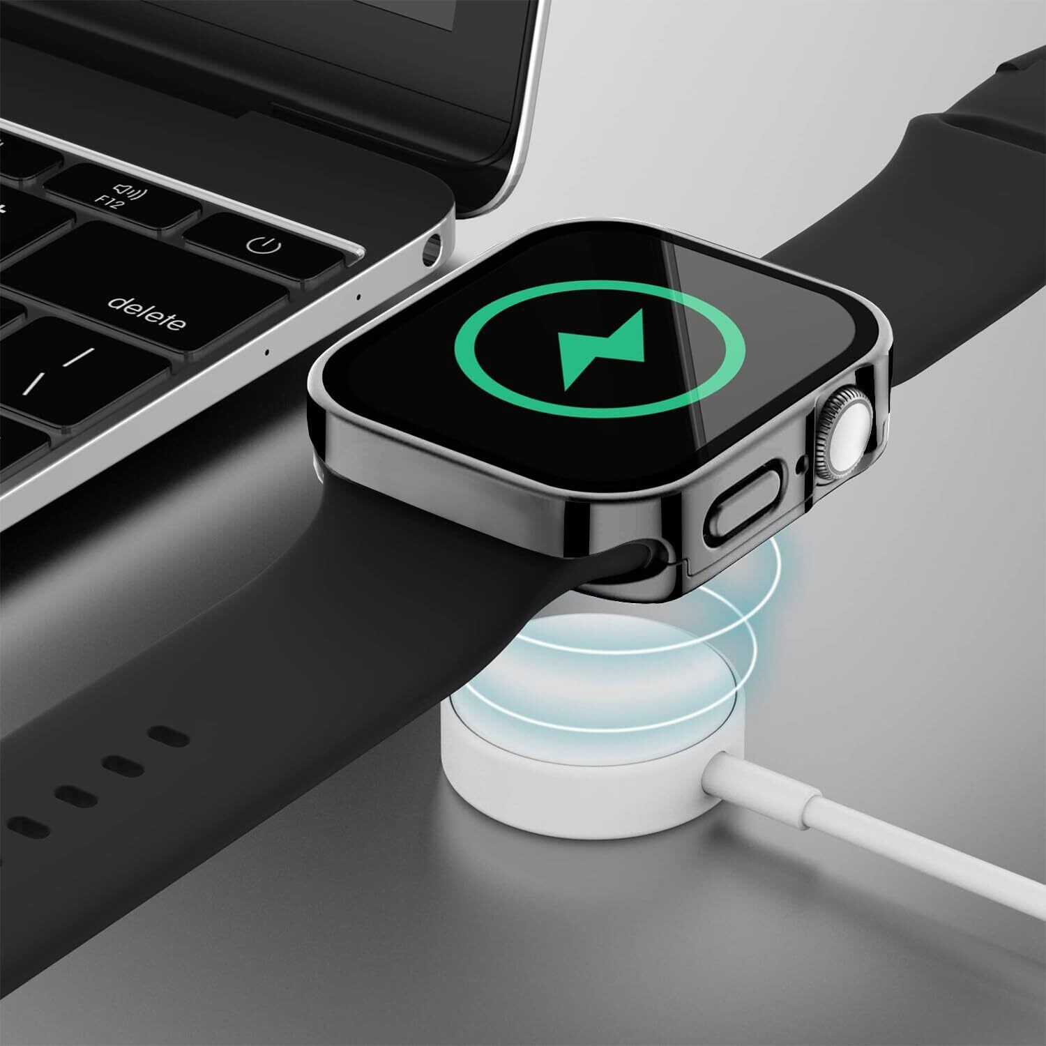 TALENANA for Apple Watchケース 【2 in 1防水設計】45mm 44mm 41mm 40mmアップルウォッチ 用 保護ケース 強化ガラスフィルム 一体型 Series 8/7/6/SE/5/4 メッキ加工 3D直角エッジデザイン PC素材 高タッチ感度 全面保護 衝撃吸収 (Series6/SE/5/4,44mm,ブラック)