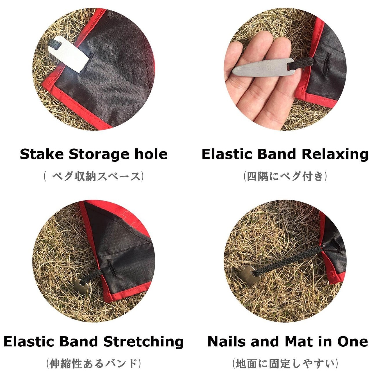 【耐摩耗性】グランドシートは引き裂き強くて耐久性バッチリです。四隅にミニーペグ付き、地面に挿し込んで風がある日でも固定できます