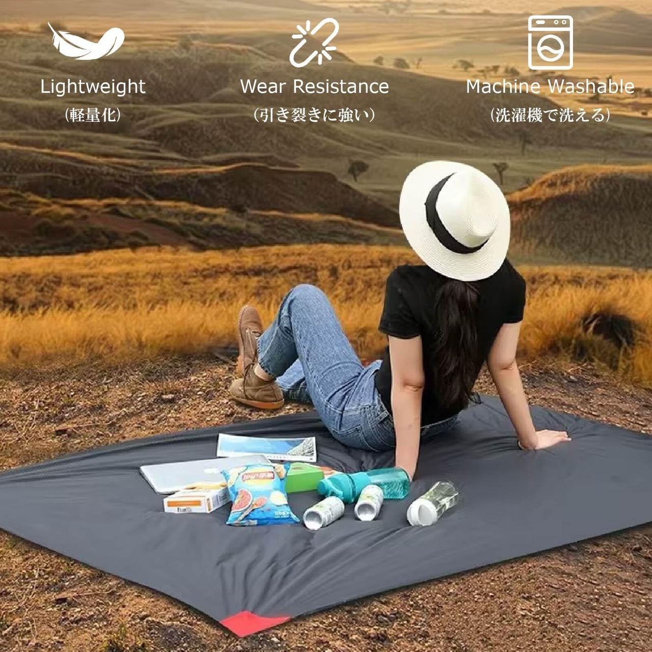 【防水性能】レジャーシートは防水性があります、地面の湿気は侵入できません、水をこぼした・濡れた場合は、布やタオルで拭き取れます