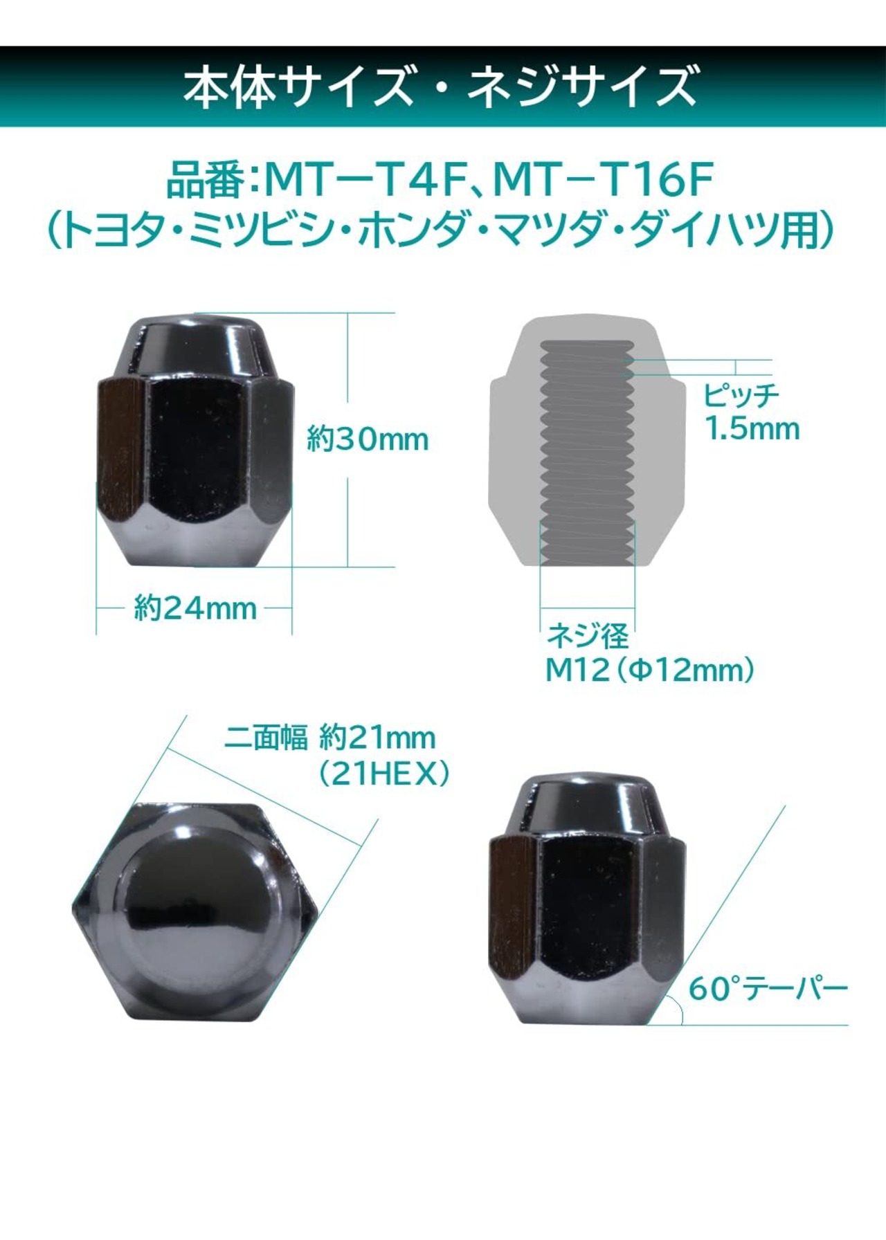 メルテック(meltec) ホイールナット トヨタ・ミツビシ・ホンダ・マツダ・ダイハツ用 袋タイプ 16個入り 適合レンチ21mm/1.5ピッチ MT-T16F