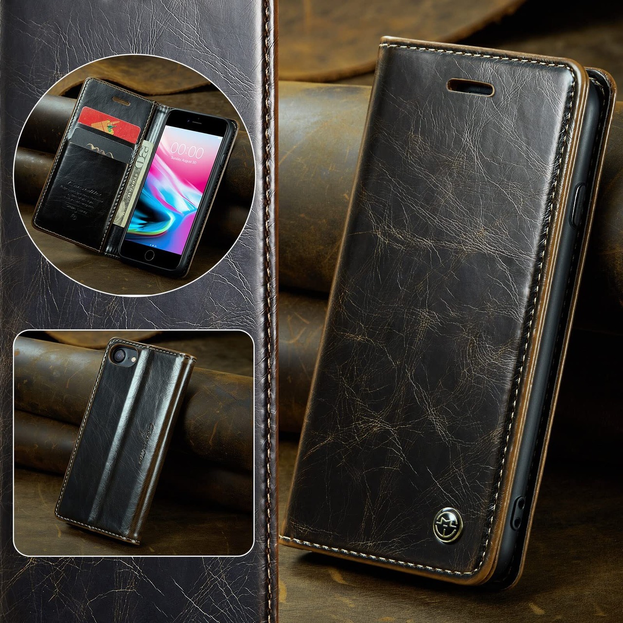 JDDLang iPhone se 第3世代 ケース 手帳型 iPhone se2 カバー 手帳 iPhone8 ケース iPhone7 ケース アイフォン se 第2世代 財布型 携帯スマホケース レトロなビジネスタイプcase カード収納 スタンド機能 耐衝撃 全面保護 人気 上質 気質 ギフト 対応iPhone SE3/SE2/7/8 4.7インチ,ダークブラウン