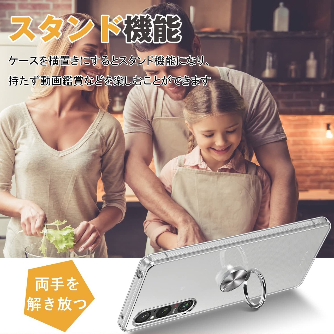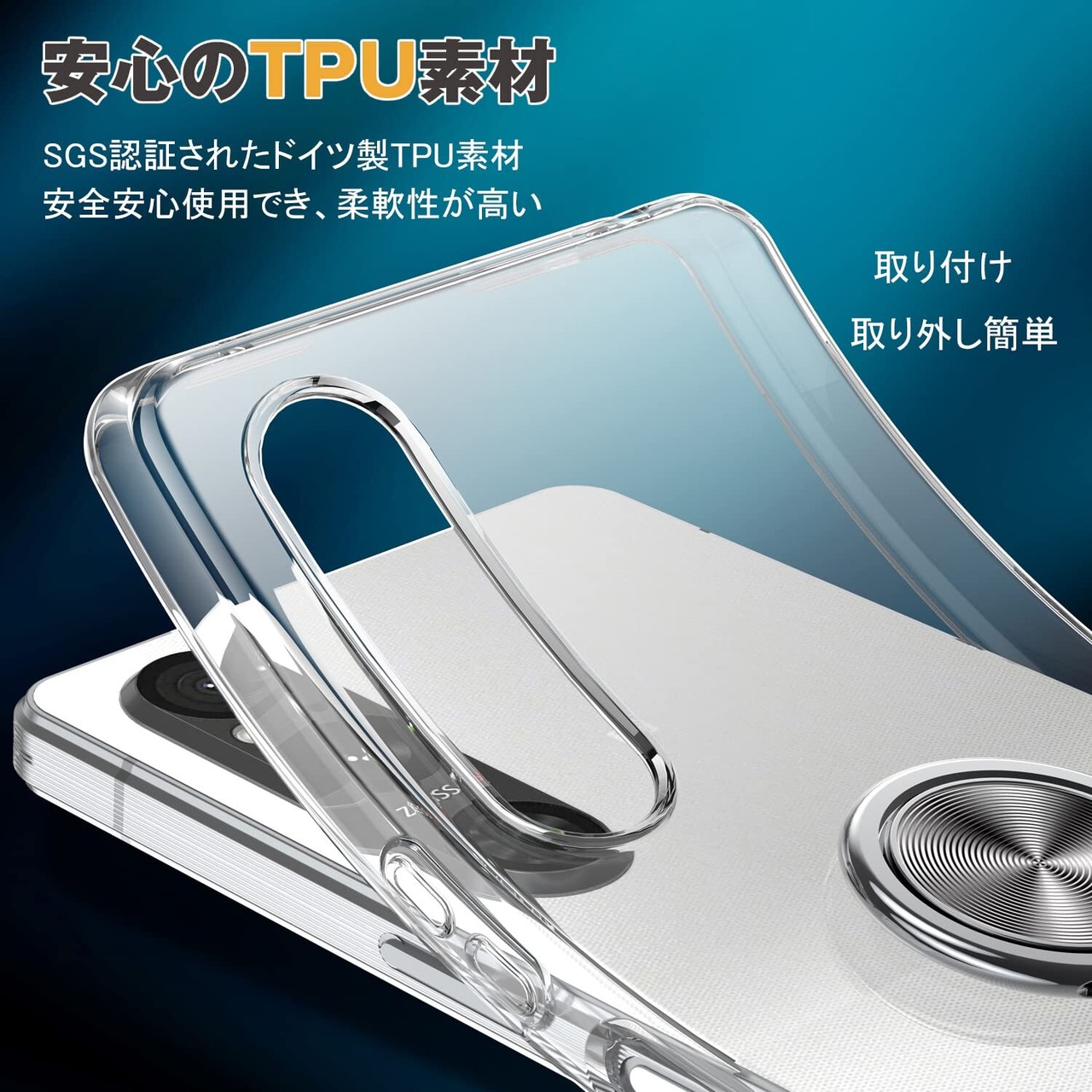 Sony Xperia 10 V ケース クリア リング付き ソニー エクスペリア 10 V/SO-52D / SOG11 用 携帯ケース OURJOY スマホケース 極薄 透明 TPU 耐衝撃 スタンド機能 車載ホルダー カバー・クリア