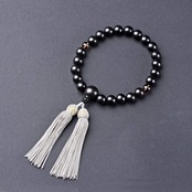 【特徴】:すべての宗派のお客様にお使い頂ける男性用のお数珠でございます。素材は、艶消し加工の施された縞黒檀に、アクセントとしてゴールデンシルバーオーラを使用いたしました。マット感のある艶消し加工が、上品な印象で高級感もましております。房は、正絹製ですので安心してお使い頂けます。