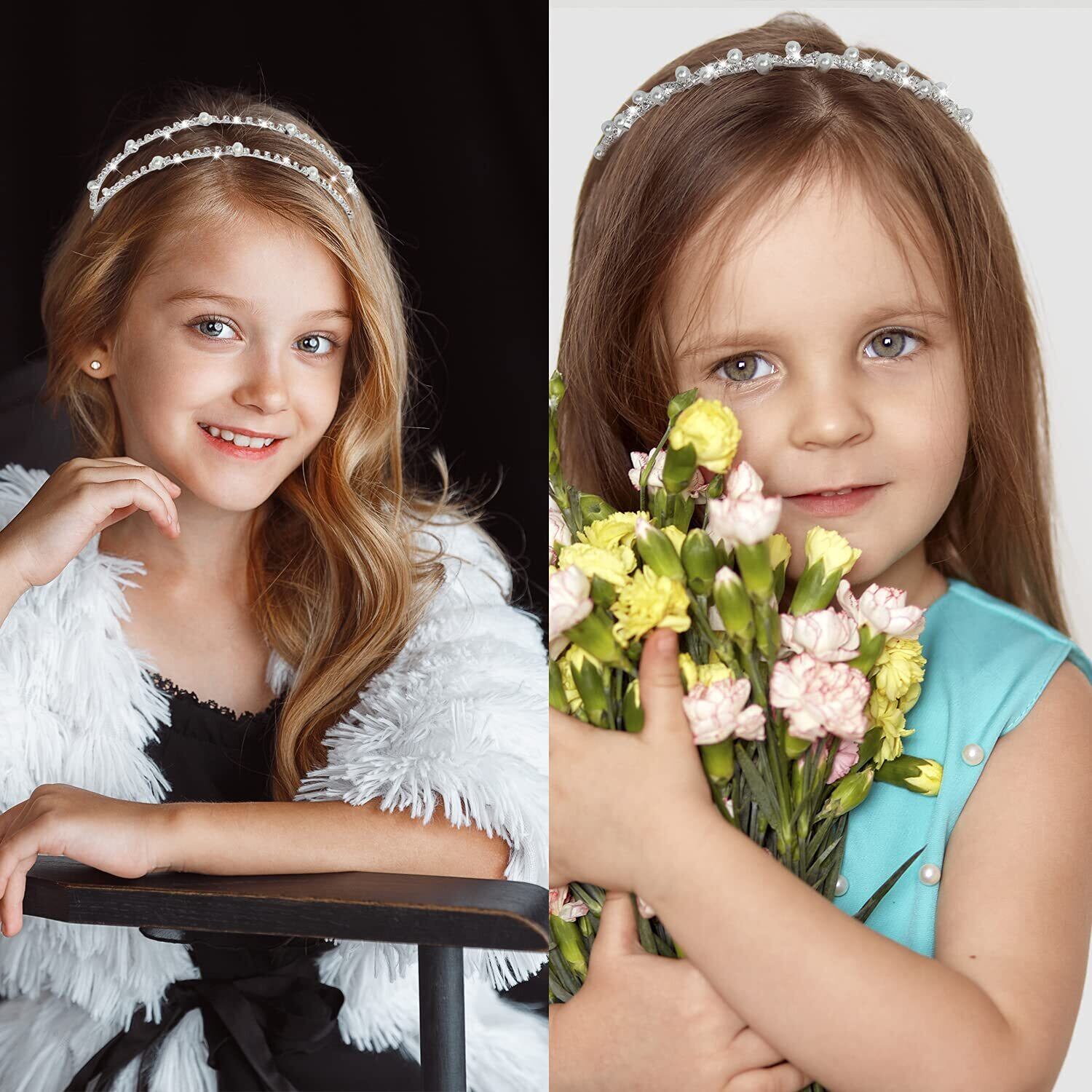 HUAZONTOM カチューシャ 髪飾り 子供 パール ティアラ キッズ ヘアアクセサリー 結婚式 おしゃれ ヘッドドレス 痛くない 2本セット 入学式 卒業式 発表会 セレモニー 女の子
