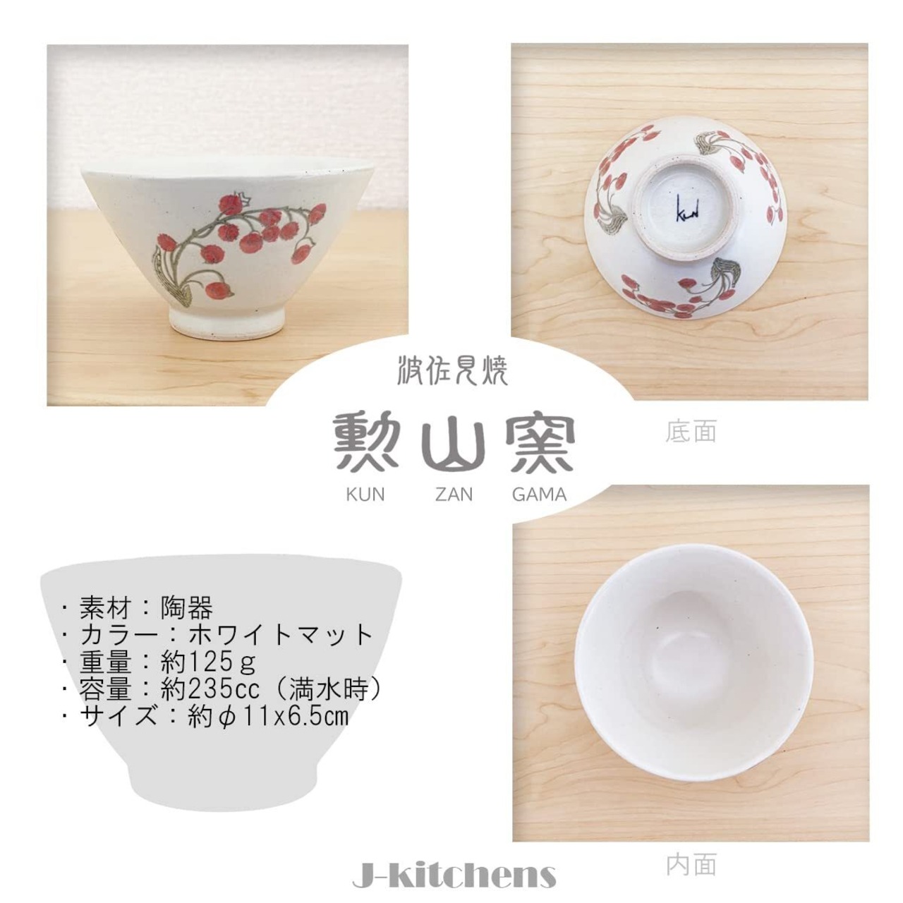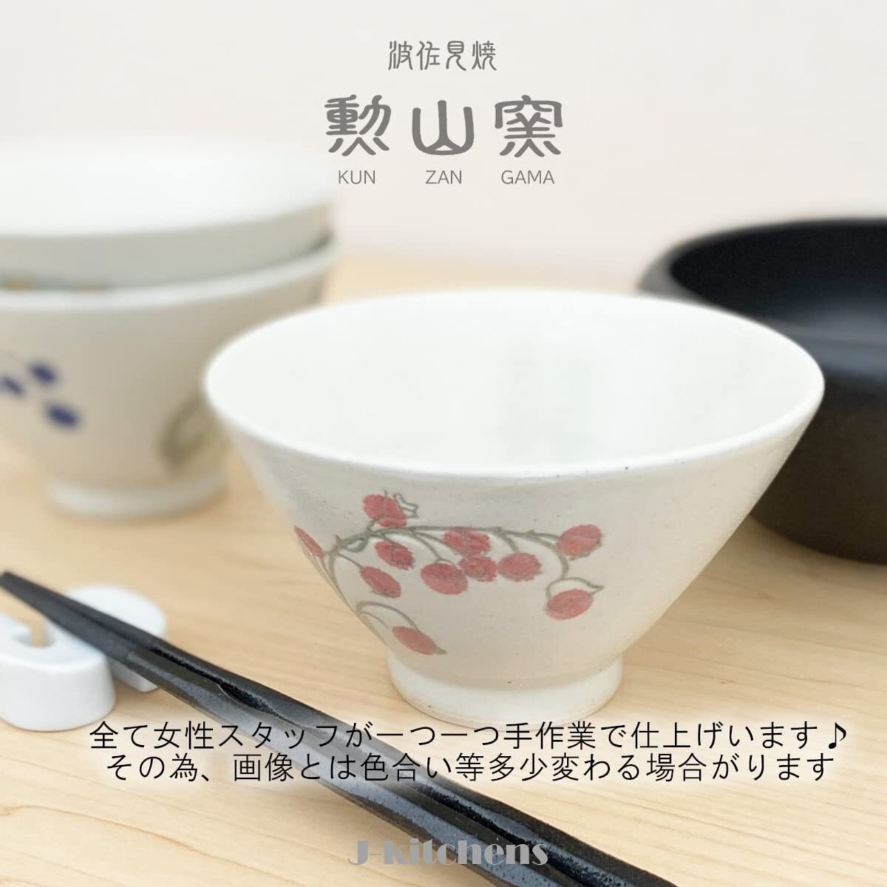 J-kitchens 勲山窯 ペア 茶碗 11cm 波佐見焼 日本製 スズラン (レッド ブルー)