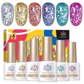 BORN PRETTY ジェルネイルカラーセット ラメ入りカラージェル ホログリッター ホログラム 春夏ネイル 6色 ゴールド ブルー UV/LED対応 ポリッシュタイプ セルフネイル