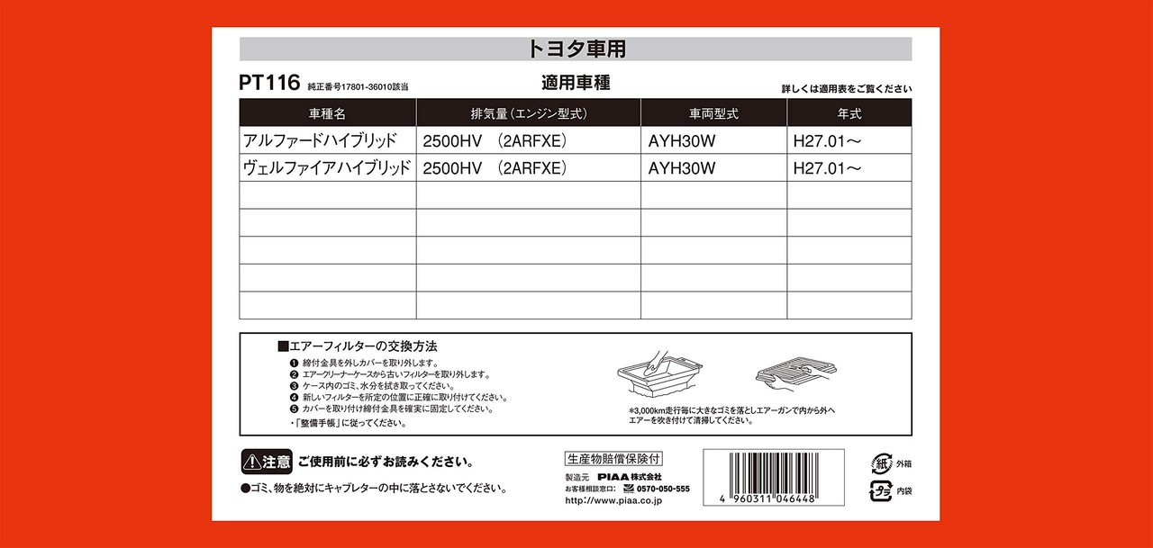 PIAA エアーフィルター 1個入 [トヨタ車用] アルファード・ヴェルファイア_他 PT116