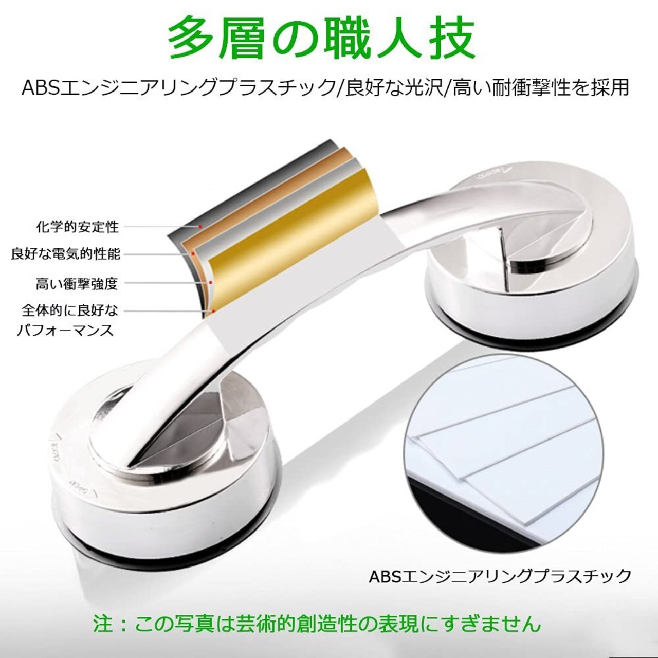 COOLBOTANG 吸盤 ドアハンドル 手すり 吸盤 取っ手 強力吸盤 手すりドアハンドル 浴室用手すり 吸盤式手すり 吸盤式取手 補助ハンドル 工事不要 取り外し簡単 介護風呂手すり 風呂 ドアノブ 取っ手 ドアノブ 吸着 窓ガラス 滑り止め 銀色