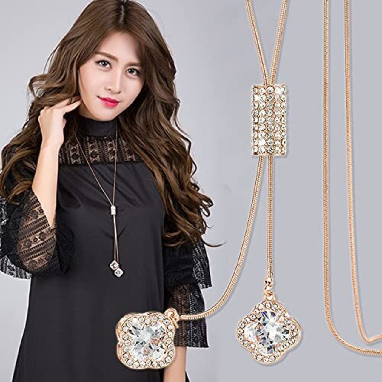 エレガントなデザイン」:幸運を呼ぶ四つ葉のクローバーを設計したY字ロングネックレス、ペンダントの調整可能のロングネックレスです。大人気の女性プレゼントです。スタイリング華やぐロングネックレスは、優しいジルコニアの艶感が上品な印象。合金のハードな質感を、エレガントなジルコニアで調和したレディライクなネックレス。チェーンの長さは90cmと、バランス良く使えるサイズ感。揺れる縦のラインで、すっきりとしたシルエットに仕上げました。