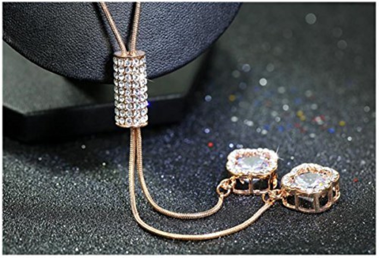 「貴方に輝く素材」上品の合金を使い、大量なCZダイヤ(キュービックジルコニア)でペンダントを贅沢に作っています。キュービックジルコニアはダイヤモンドに近い輝きを放出できる人工宝石です。高級感が溢れるY字ロングネックレスです。