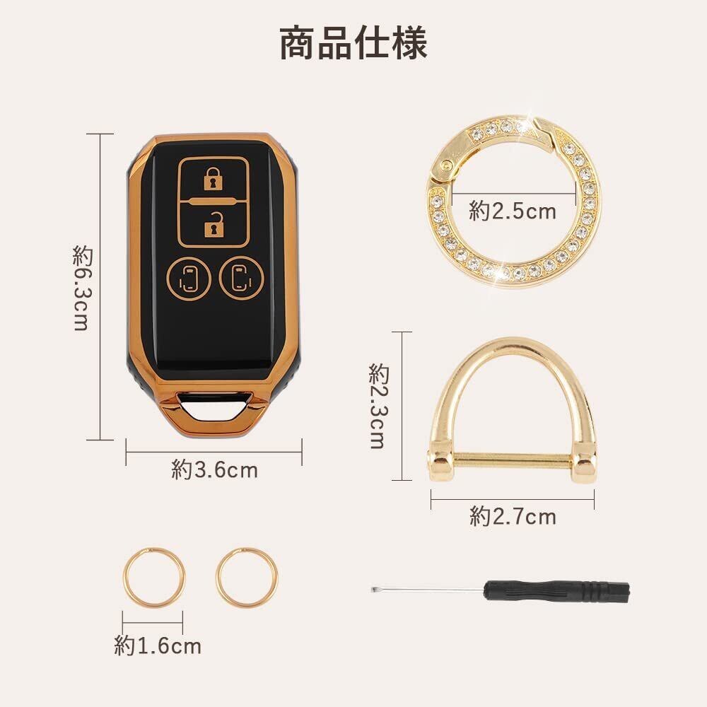 [Futwod] スズキ 専用 4ボタン キーホルダー キーケース ソリオ スペーシア ジムニー ハスラー スイフト クロスビー フレアワゴン キーシェル SUZUKI アクセサリー キーカバー 軽量 TPU 傷防止 ブラック