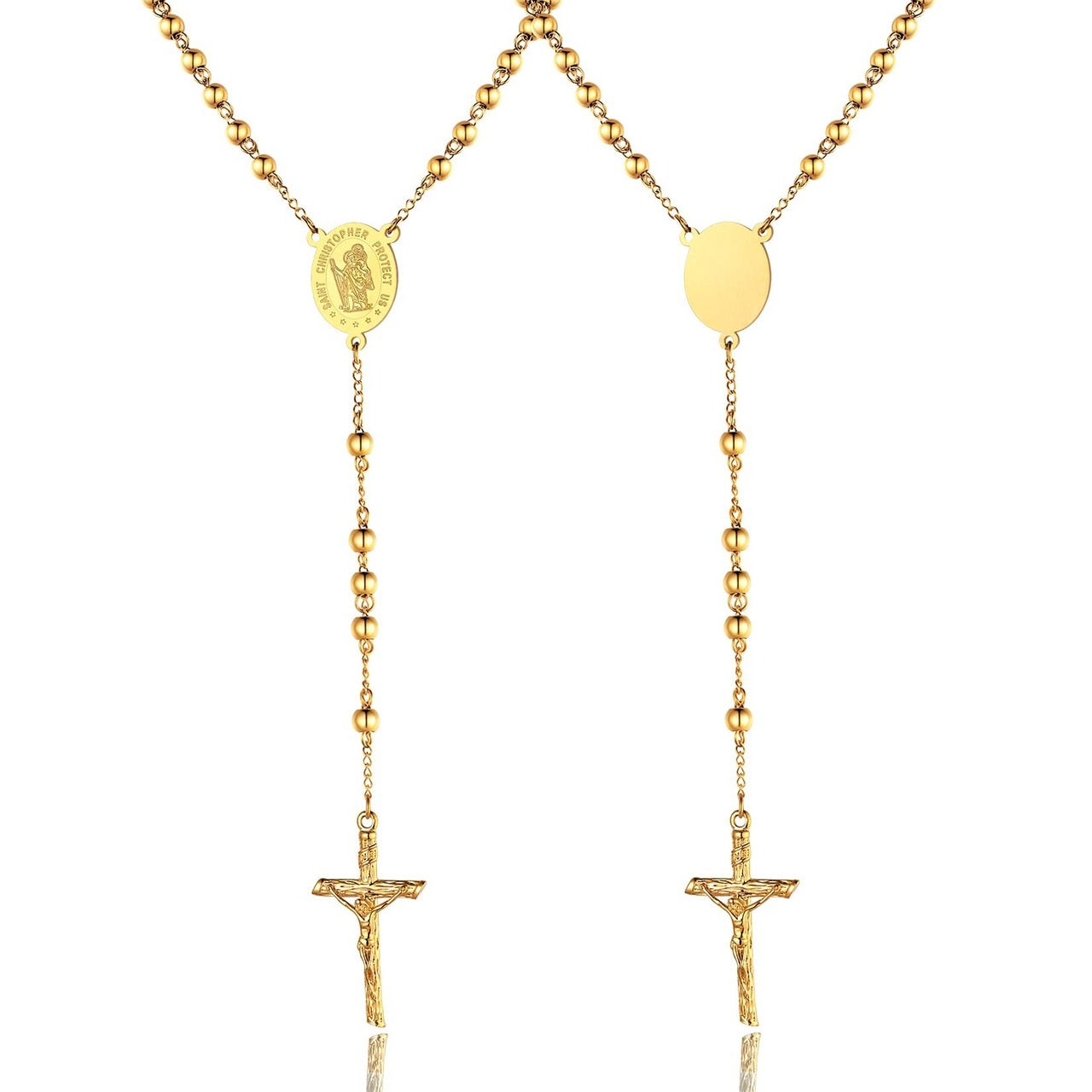 [ChainsPro] y字 ロングネックレス レディース クロス 十字架 聖クリストフォ ステンレス ロザリオ アクセサリー