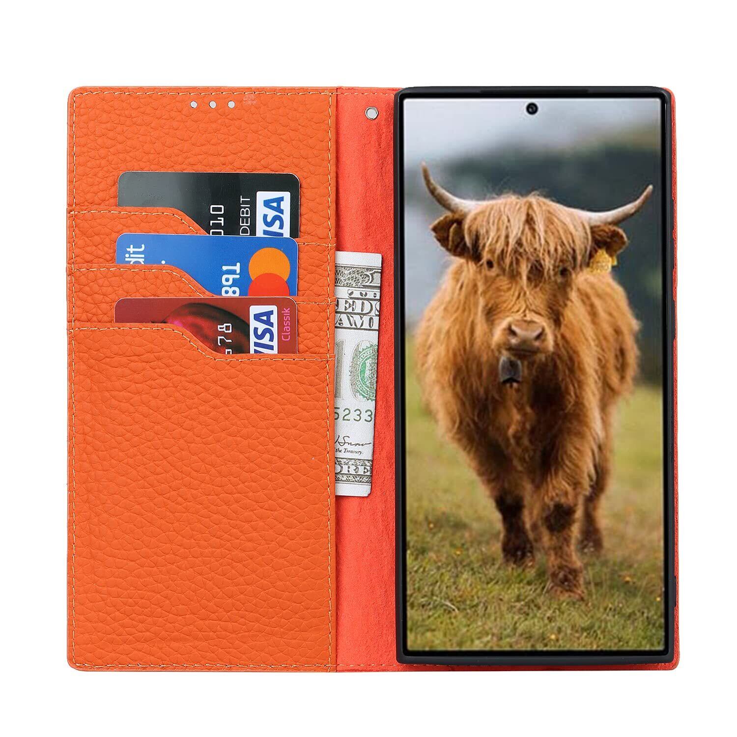 Eastwave for Galaxy S23 Ultra ケース 本革 牛革 サムスン ギャラクシー for Samsung S23Ultra SC-52D SCG20ケース for galaxy s23 ultra 手帳型 カバー Case カバー 手帳 本革 柔らかい 本皮 スプラットホール付き スプラット同梱 内蔵マグネット-オレンジ