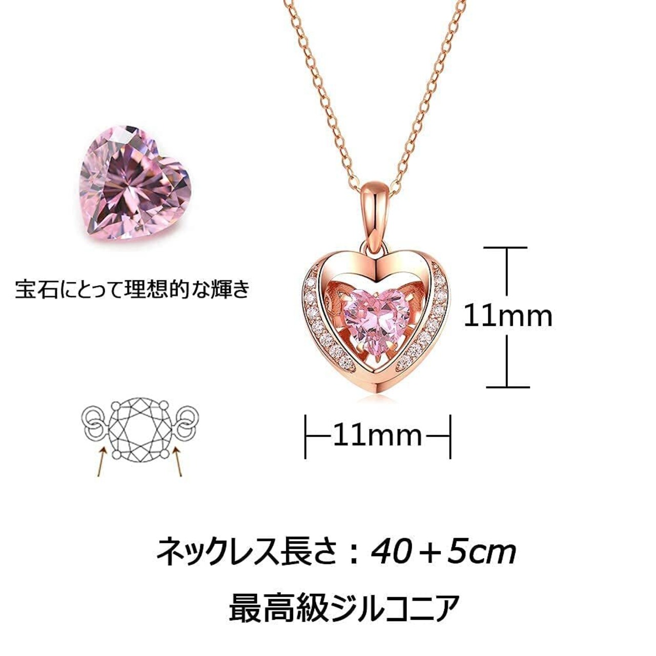18金メッキ:このネックレス レディースは地金の925シルバーの上に2層ローズゴールドメッキを採ることによって耐食性が向上する。通常のアクセサリーより独特の光沢を持ち、耐久性があり、変色しにくいです