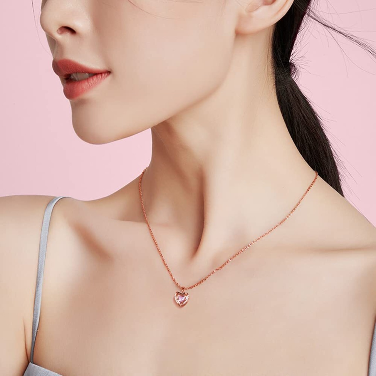 ロマン可愛:このネックレスはピンクゴールドとピンクジルコニアのペンダントを使用しており、エレガントでゴージャスな外観を作り出し、ロマンチックで快適な雰囲気を作り出し、女性の服装をより魅力的にします