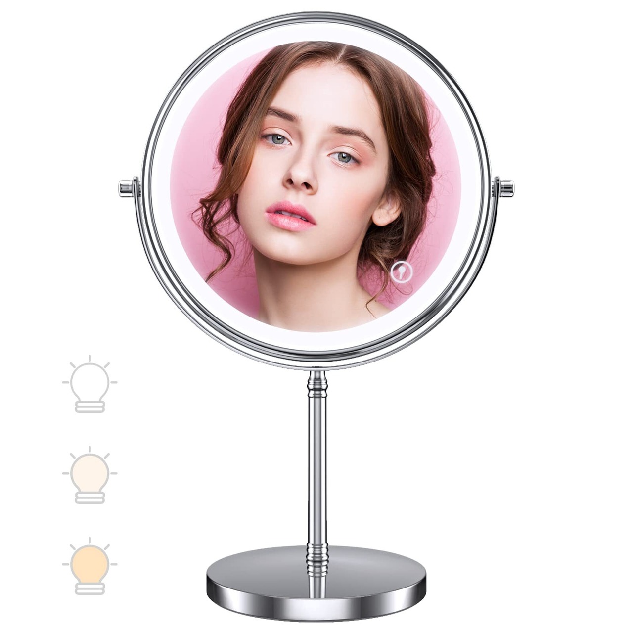 【タッチ式&3色調節】ワンタッチで「寒色・自然色・暖色」を選択可能。ライト付き機能と組み合わせれば、オフィス(寒色)からパーティー(暖色)まで、五倍拡大鏡付きで全てのシーンに対応。長押しで明るさ調節も自由自在!