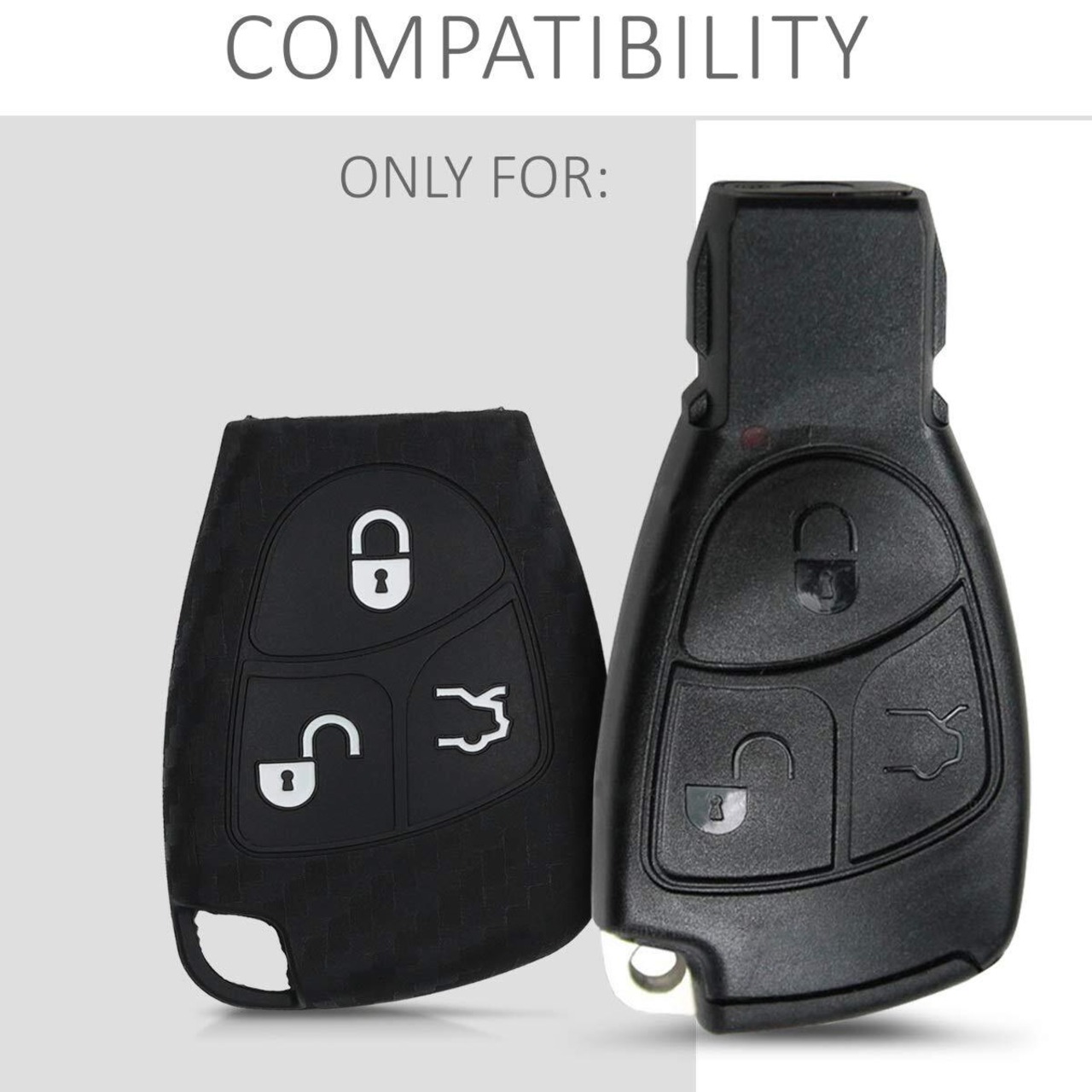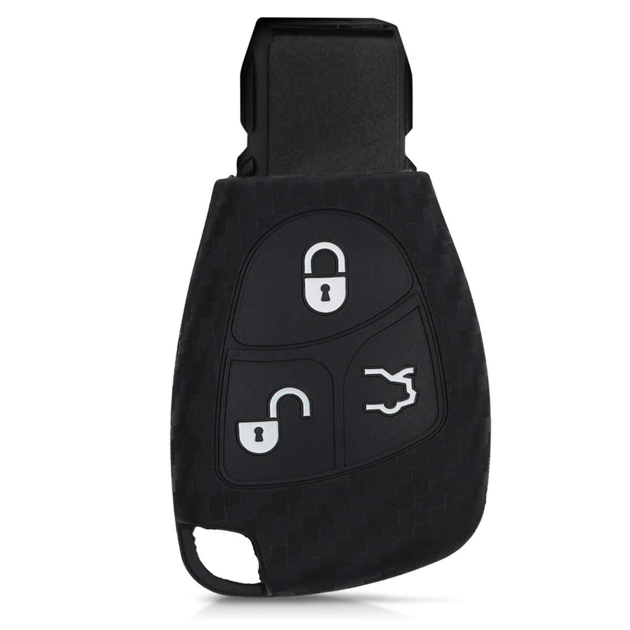 kwmobile キーカバー 対応: Mercedes Benz 2-3-ボタン 車のキー キーケース - 保護ケース シリコンカバー ソフト シリコン カーボンデザイン