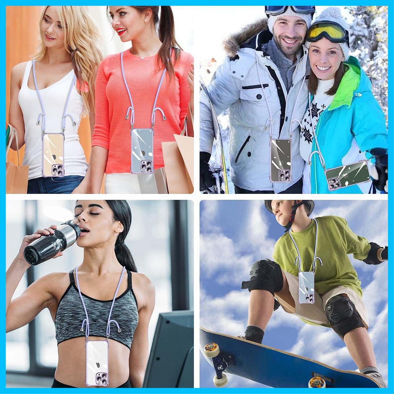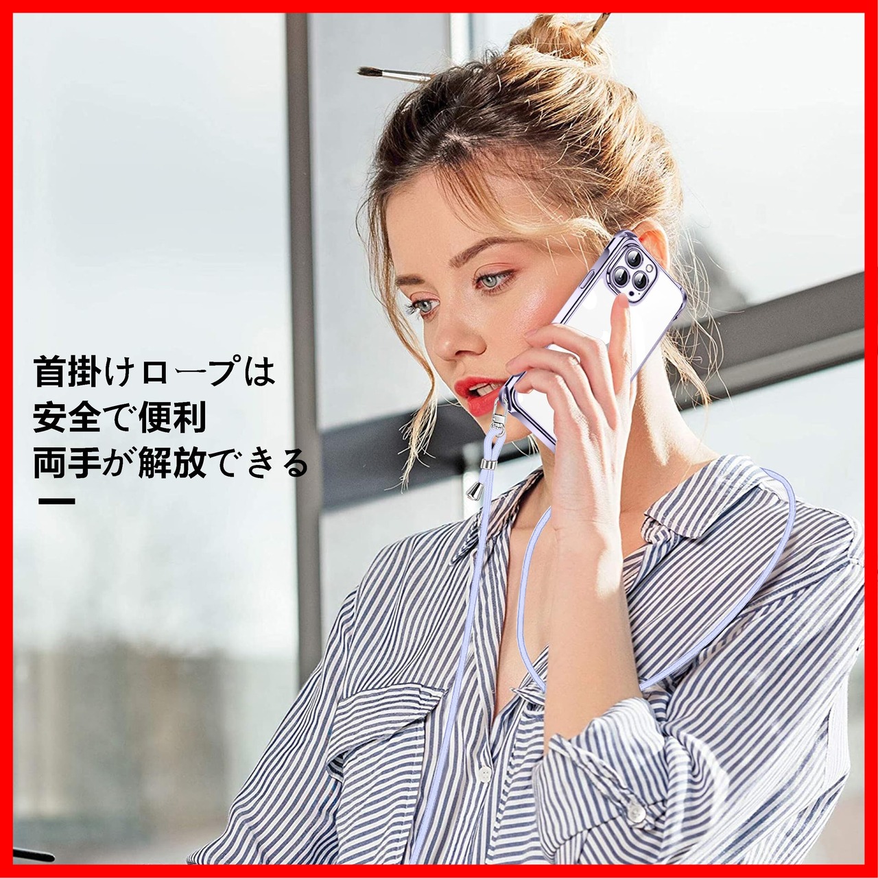 iPhone 13 Pro 用 ケース クリア ショルダー iphone13pro 用 スマホケース アイフォン13Pro カバー 肩掛け 斜めかけ 縄掛けケース 透明 TPU 薄型 軽量 耐衝撃 紐付き 斜めがけ 織りストラップ付き ネックストラップ ショルダー ケース 縦/横 2WAY 長さ調整可能 取り外し可能 落下防止 紛失防止 ワイヤレス充電対応 (パープル)