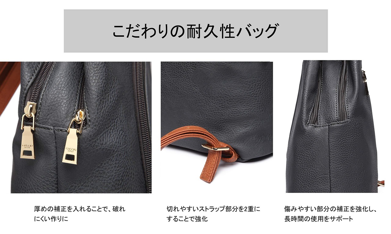 【グッシオ ベーシック】レザータッチ 3WAY リュック x 肩掛け x ハンドバッグ レディース お洒落 多機能 italy 人気商品 120406