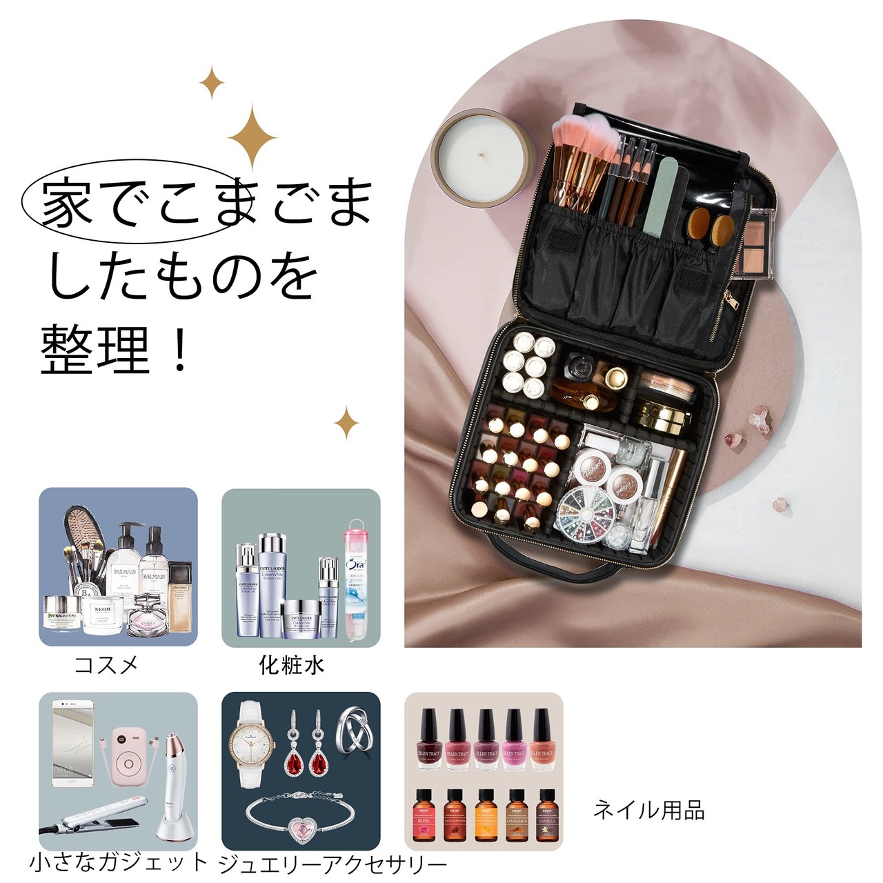 【持ち運び楽々】外出、出張、旅行など場合に持ち運び便利のメイクボックスです。旅行用、スポ ーツジム、アウトドア、ゴルフ場、キャンプ、温泉、アウトドア、自動車や家のトイレ中などの様々なシーンで大活躍します。