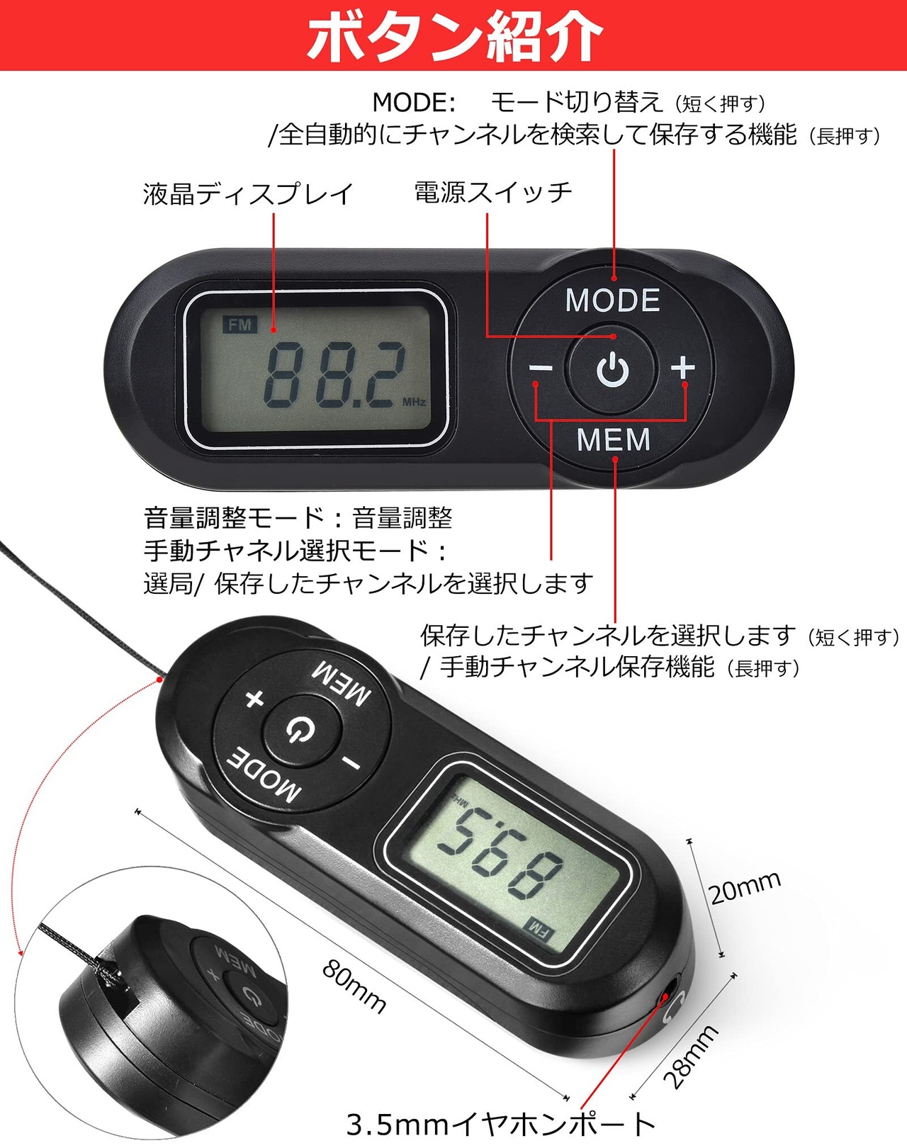 【メモリーラジオ】抜群なチップを採用し、20個のラジオFM番組が保存でき、たくさんのラジオ番組を楽しむことができます!更に電源オフメモリー機能を備えており、次回からの使用はもっと便利に操作可能です。保存されたラジオ放送局は、シャットダウンまたはバッテリの交換のために失われません。