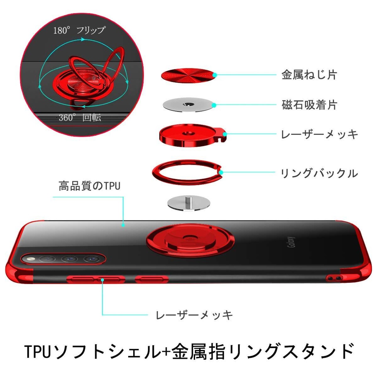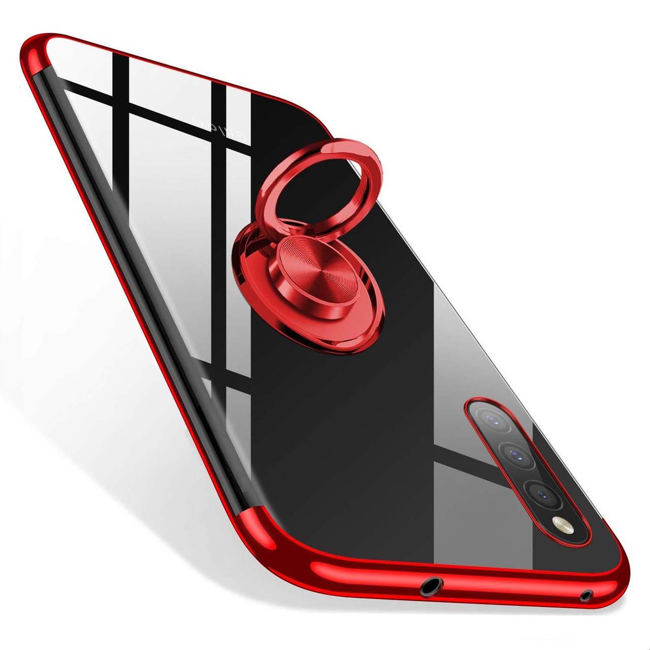 Galaxy A41 ケース リング クリア TPU 耐衝撃 [ SC-41A / SCV48 ] 対応 シリコン 薄型 軽量 透明 スリム メッキ加工 傷つけ防止 スタンド機能 車載ホルダー対応 一体型 スマホ保護カバー レッド
