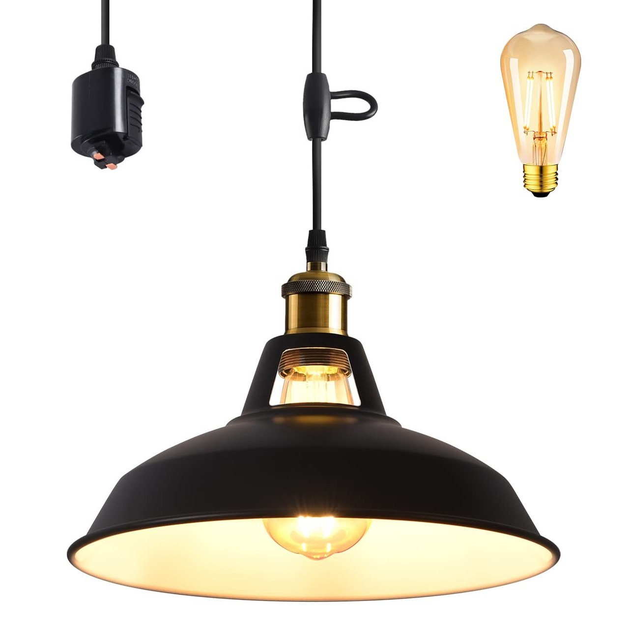 LVWIT ペンダントライト ダクトレール式 E26口金 直径27CM 北欧風 LED電球付き エジソン電球 コード付き 60cm調節可能 吊り下げ インテリア 天井照明 ダイニング 食卓用 リビング カフェ 雰囲気 1灯セット
