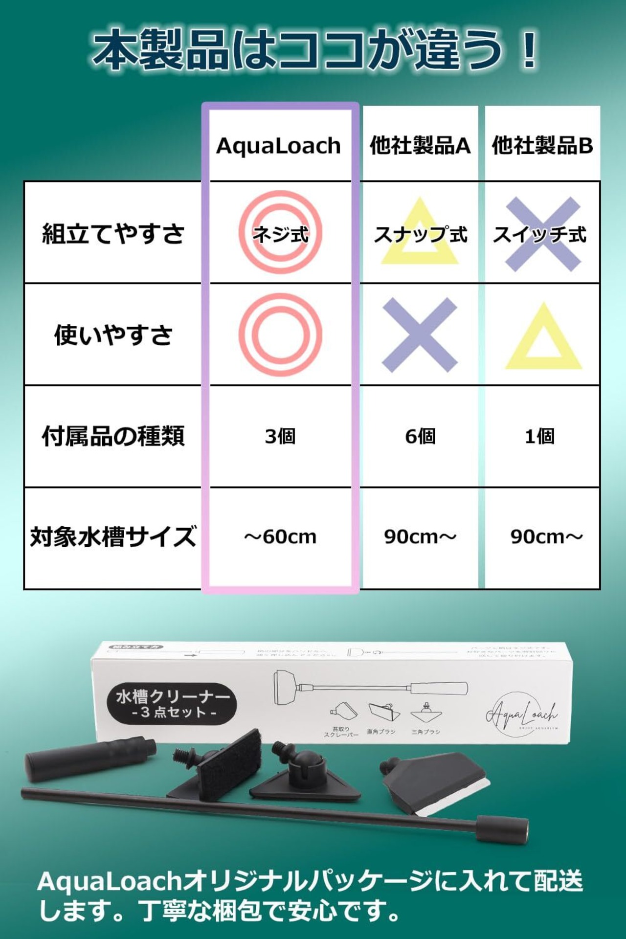AquaLoach 水槽クリーナー 3点セット 水槽 掃除 スクレーパー 三角ブラシ 直角ブラシ 【アクアリスト監修 水槽掃除はこれ1つでOK】 アクアリウム コケ取り