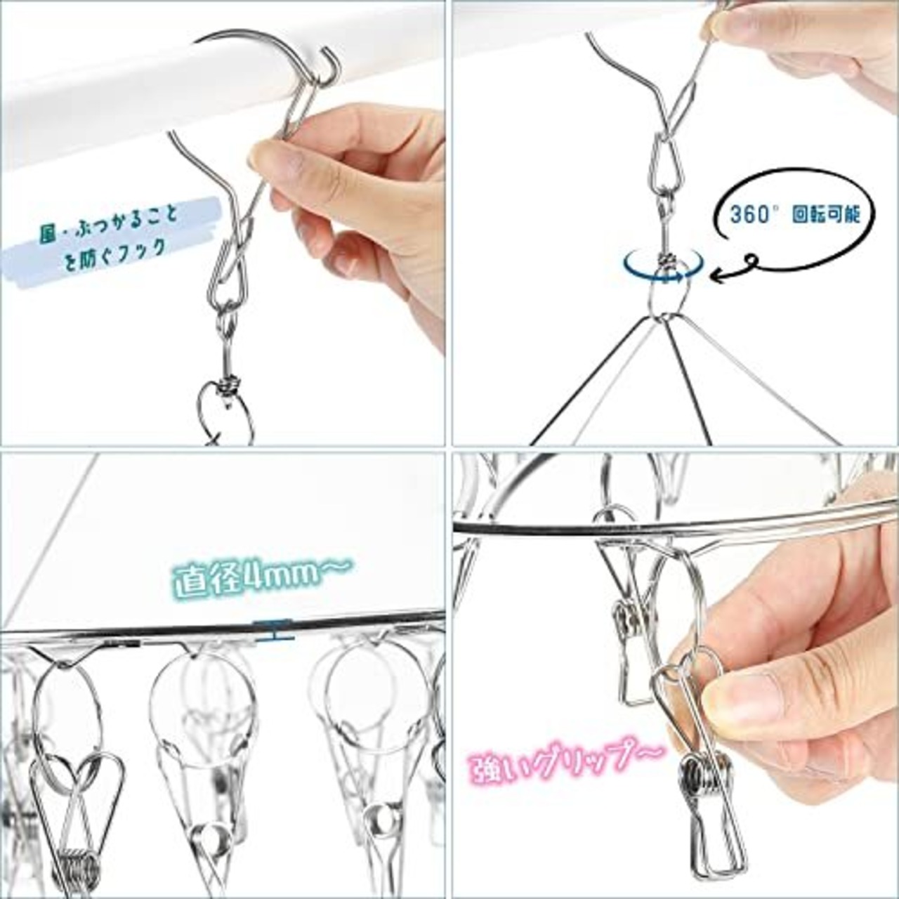 Skroad 2023最新型 物干しハンガー ンチ ステンレスピンチハンガー 洗濯 ハンガー ピンチ ステンレス ピンチ ハンガー ステンレス 洗濯もの 干しハンガー (10ピン,円形 2個)