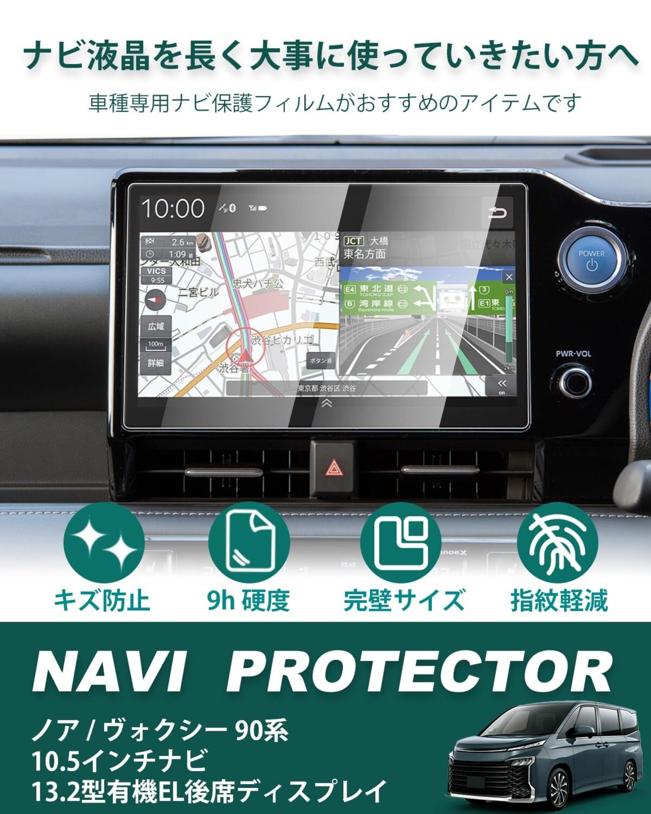 LANTU トヨタノア ヴォクシー 90系 用 【ナビ+後席モニターフィルム 2枚セット】 「全面保護」10.5インチ ナビ フィルム + 13.2型有機EL後席ディスプレイ V13T-R72F リアディスプレ ガラスフィルム 指紋防止 キズ防止 貼付簡単 自己吸着タイプ 気泡ゼロ 高感度タッチ 汚れ防止 耐眩光 アクセサリー カスタム パーツ