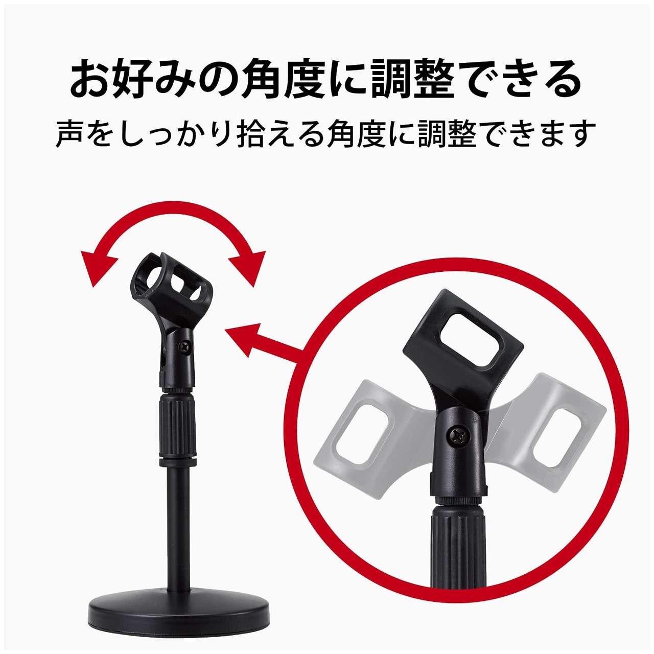 伸縮する支柱にマイクを装着して、お好みの高さに調節できます。