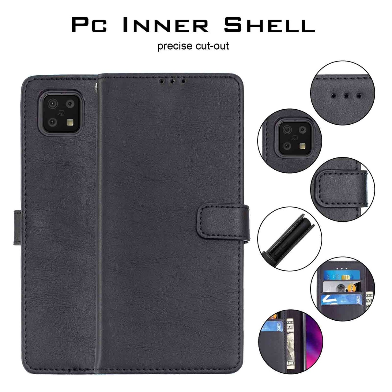 【Anrek】SHARP AQUOS sense6 / docomo SH-54B / au SHG05 兼用 ケース 手帳型 カバー ( ブラック ) シャープ アクオス センス6 ドコモsh54b shg05 sense6 手帳型ケース カード収納 サイドマグネット スタンド機能付き 全面保護 財布型 PUレザー シンプル ビジネス風sense6 BLACK