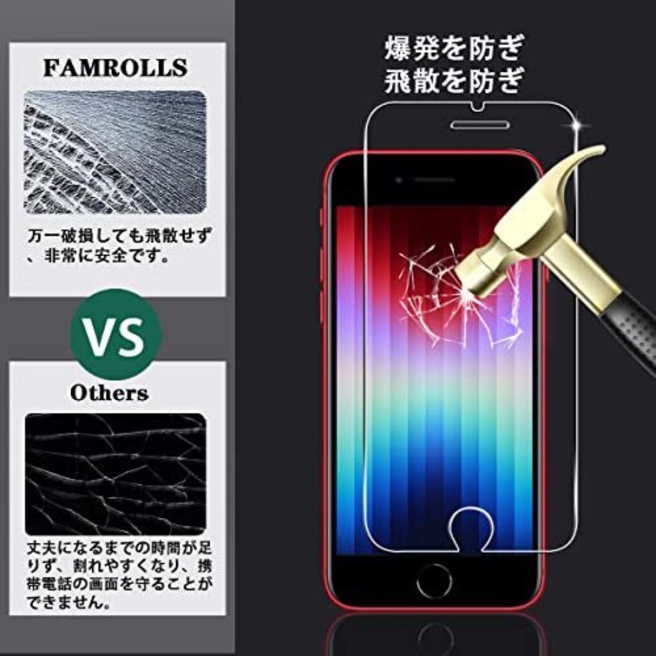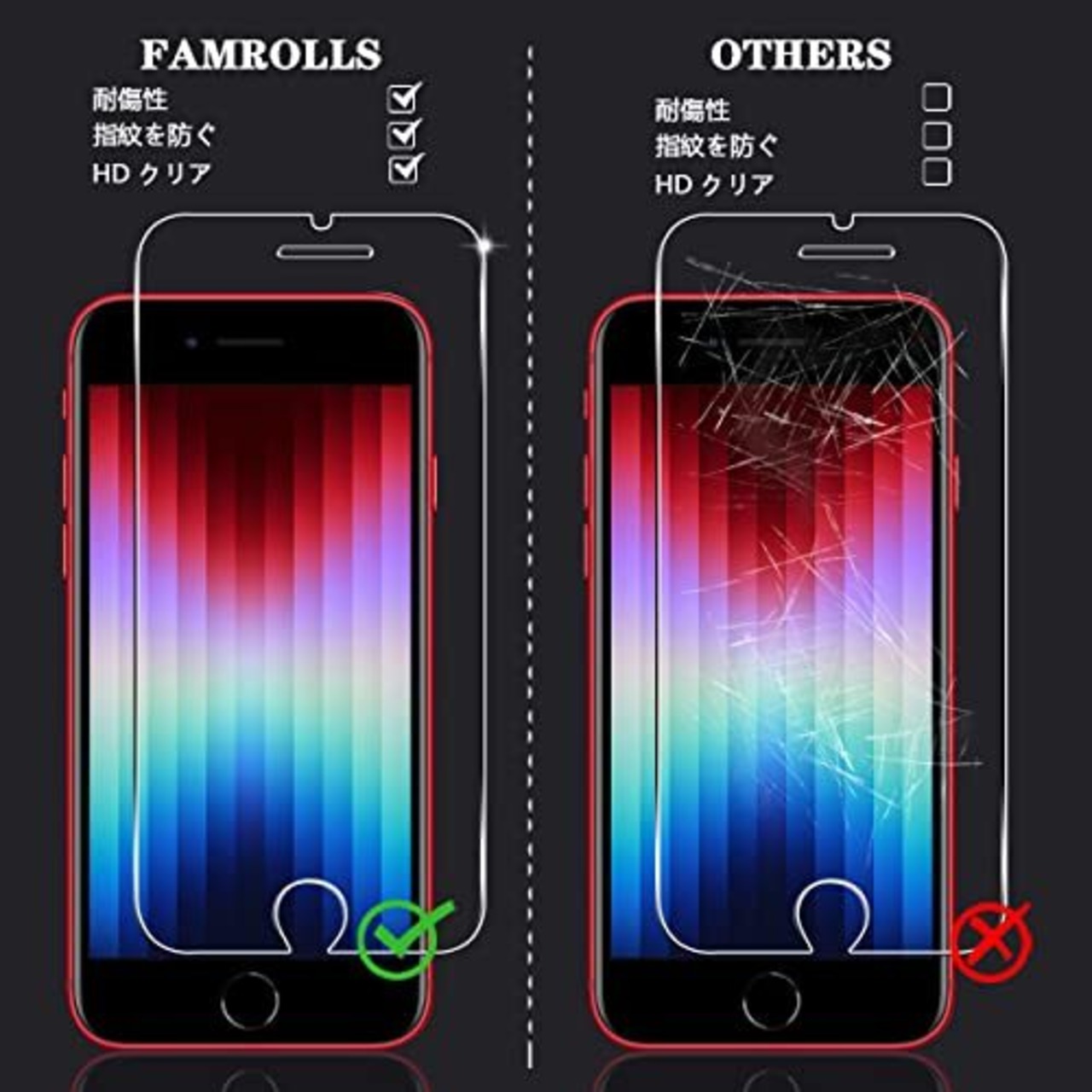 【対応機種】 IPhone se3 / se2 / iPhone8 / iPhone7 / iPhone6 / iPhone6s 4.7インチ 専用。素材に日本製の旭硝子を採用。【2枚セット】2枚 用 iPhone SE 第3世代 / 第2世代 強化ガラスフィルム【FAMROLLS正規品】スマホの周辺アクセサリーを長年手掛けるFAMROLLSメーカーの人気スマホガラスフィルムです。安心してご注文ください。