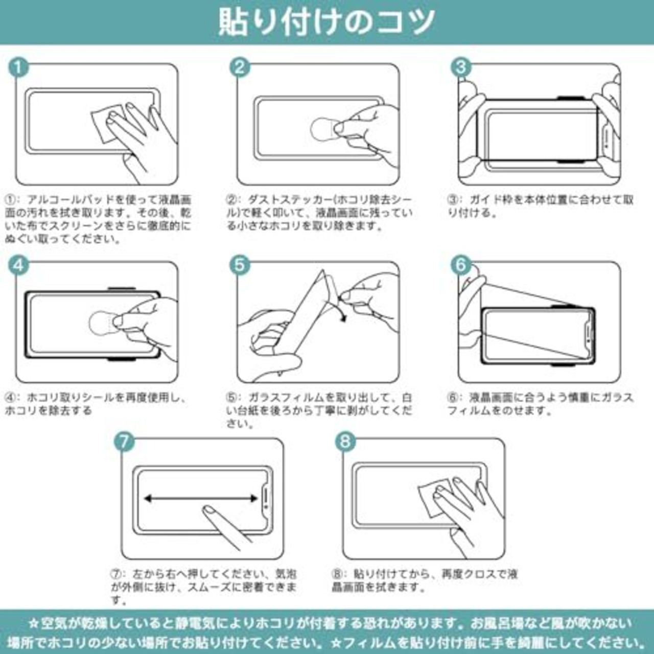 【自動吸着指紋防止】保護フィルムの接着面は特殊な自動吸着層を使用しているので、気泡が入りづらくなっています。フィルム貼りが苦手な人や絶対気泡を入れたくない人も簡単に貼り付けできて助かります。表面には指紋が付きにくくなるアンチフィンガープリントコーティングを施され、常に清潔感を保てます。指紋が気になってきた場合でも簡単に拭き取れます。