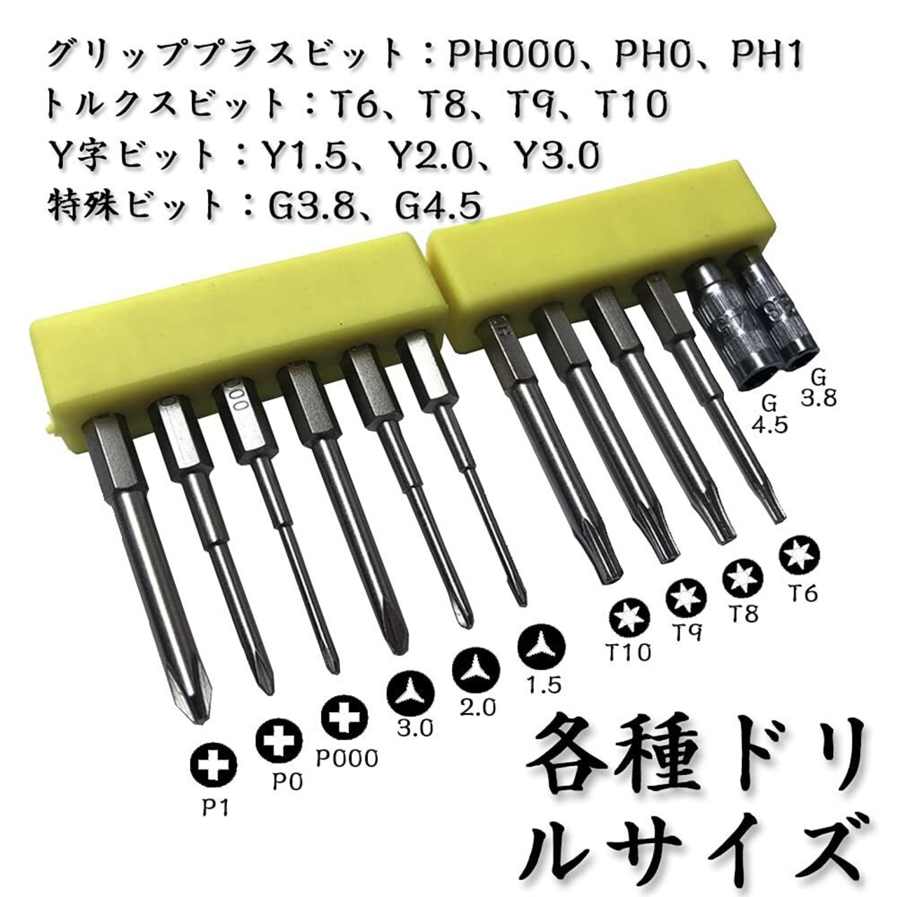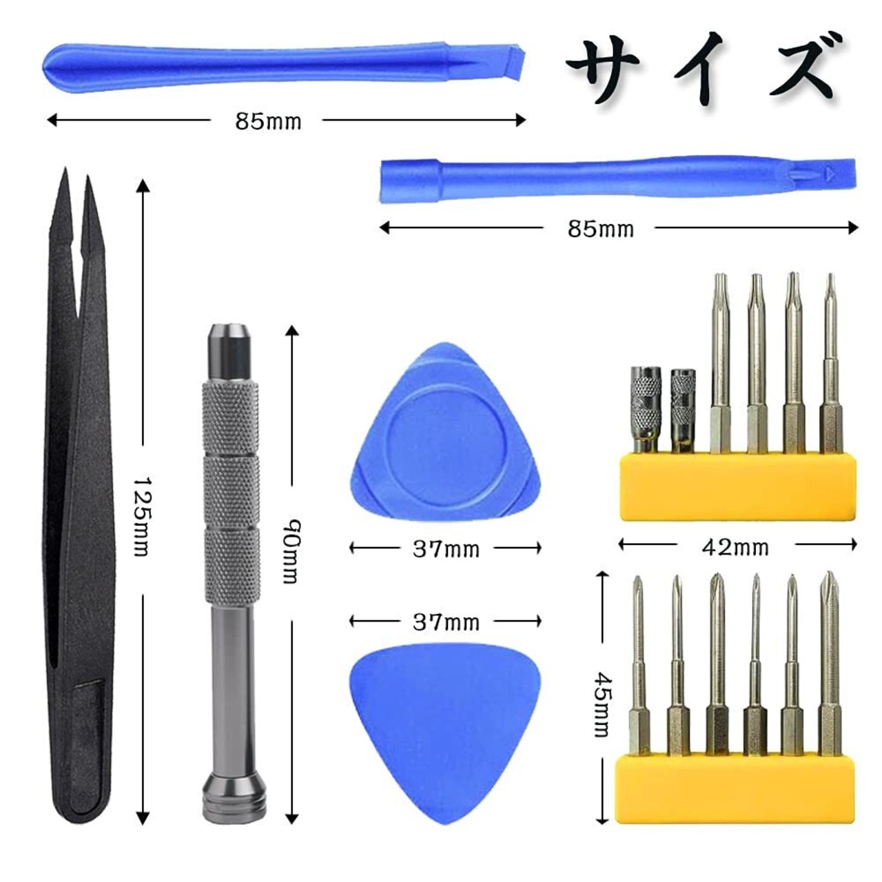【16 in 1 修理セット】グリップ プラスビット:PH000、PH0、PH1 トルクスビット:T6、T8、T9、T10 Y字ビット:Y1.5、Y2.0、Y3.0 特殊ビット:G3.8、G4.5 ピンセット 補助スティック 分離ピック 専用ケース