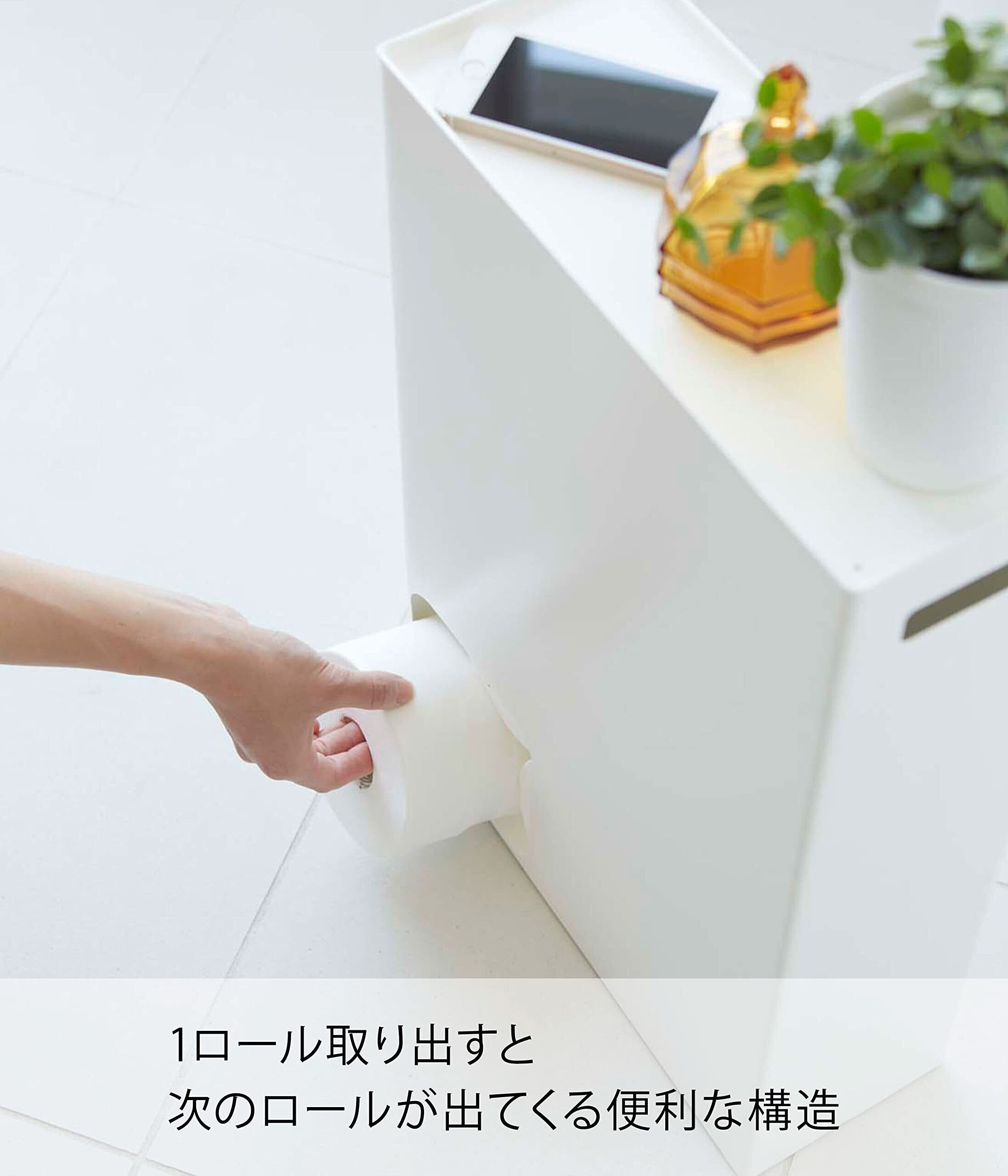 山崎実業(Yamazaki) トイレットペーパーストッカー ホワイト 約W33×D12.5×H48cm プレート Plate 12ロール 収納 トイレ スリム 2294