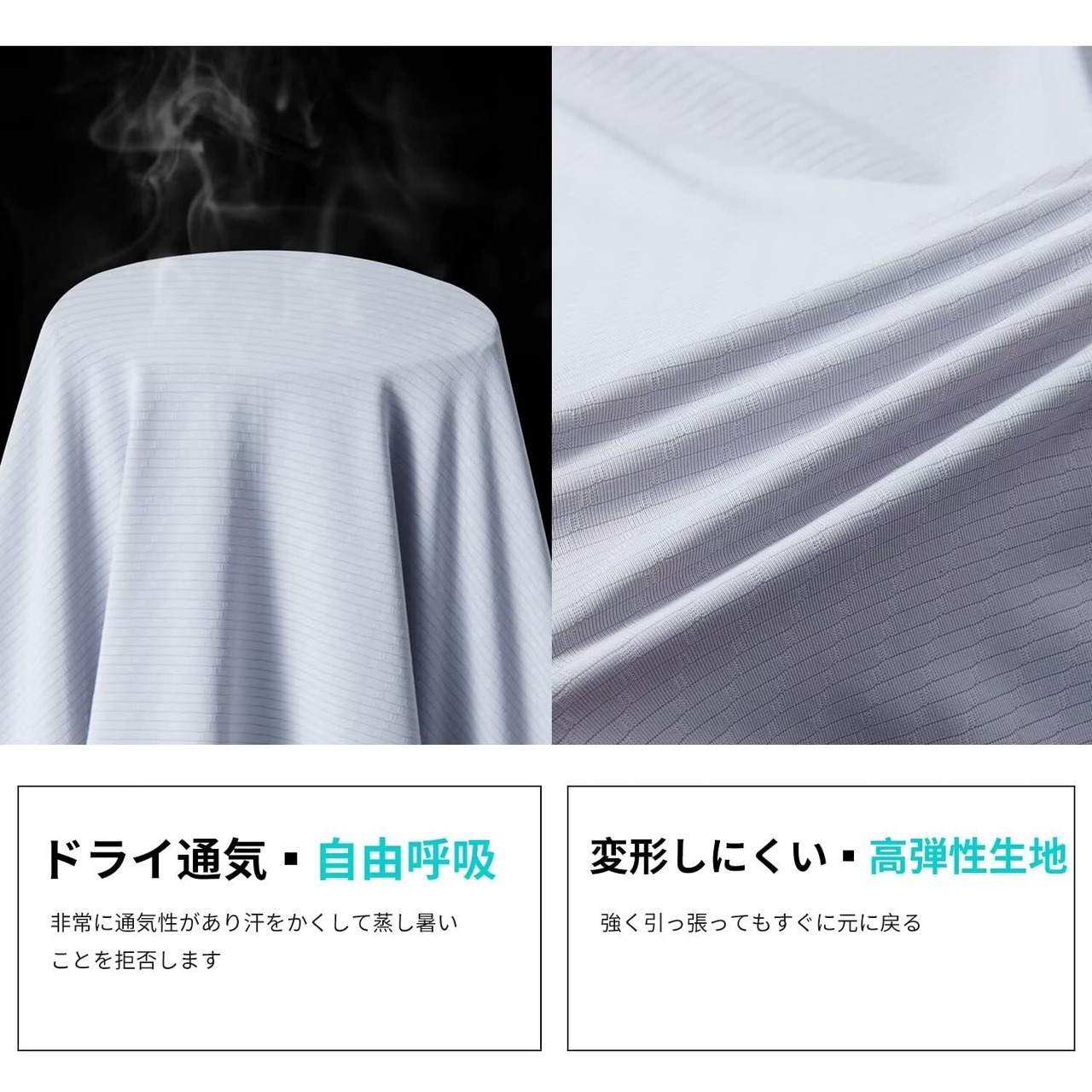 【接触冷感】冷感生地を使用!一般の蒸し暑いポリエステル生地ではなく、独特な紡織技術で織った通気性と速乾性に優れな生地を使用、汗ばむでも蒸れません。伸縮性がある生地のため、ストレスなく着用できます。