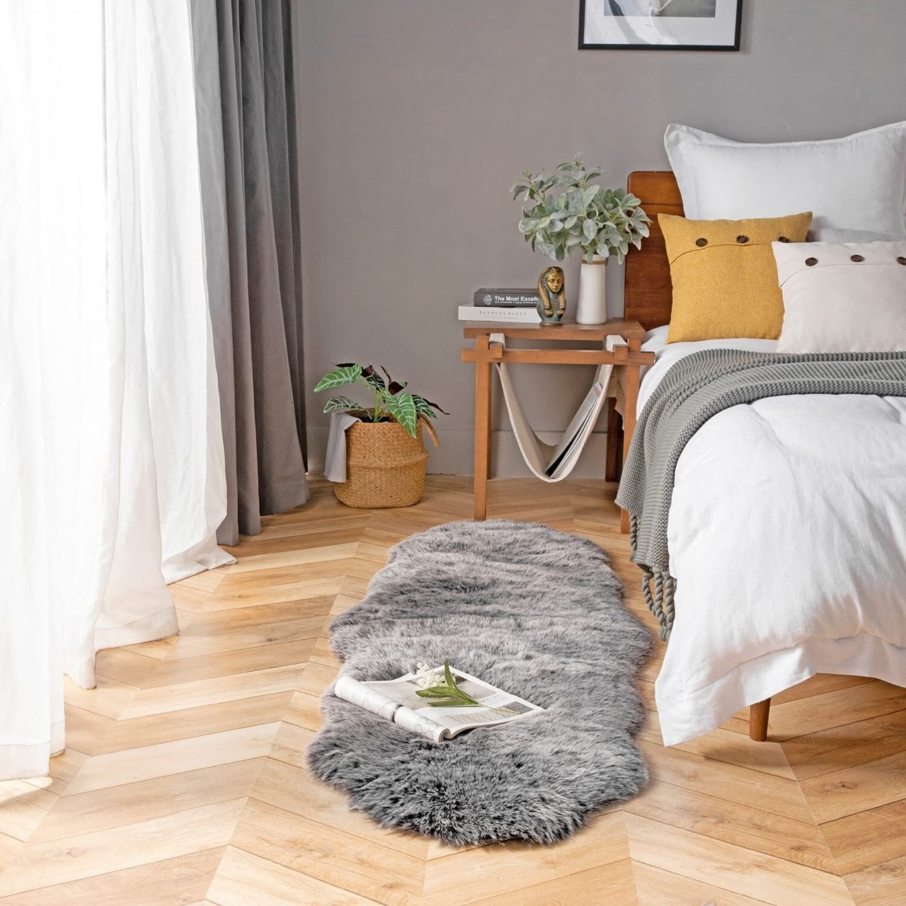 【肌触りよく】光沢のある超極細マイクロファイバー使用、見た目・風合いともに天然のムートンに似せて作られたもので、軽くて、保温性に優れ、虫やカビの害を受けにくいなど、天然のムートンよりお手入れが簡単です。