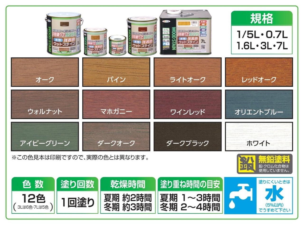 アサヒペン 塗料 ペンキ 水性強着色ウッドステイン 0.7L ウォルナット 水性 木部用 1回塗り 高い隠ぺい性 低臭 はっ水性 防カビ 防虫 防腐 防藻 日本製