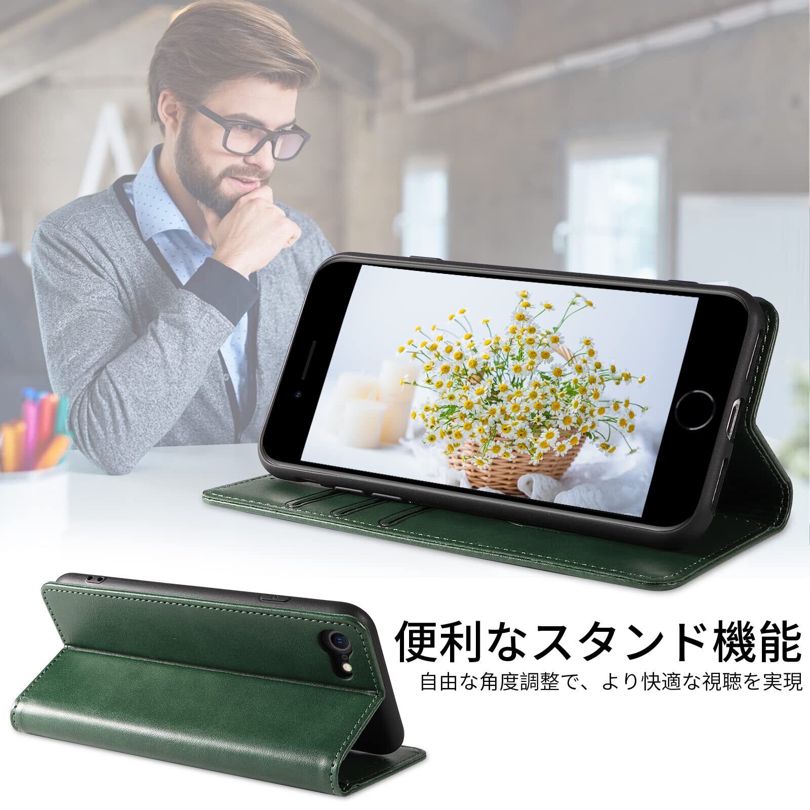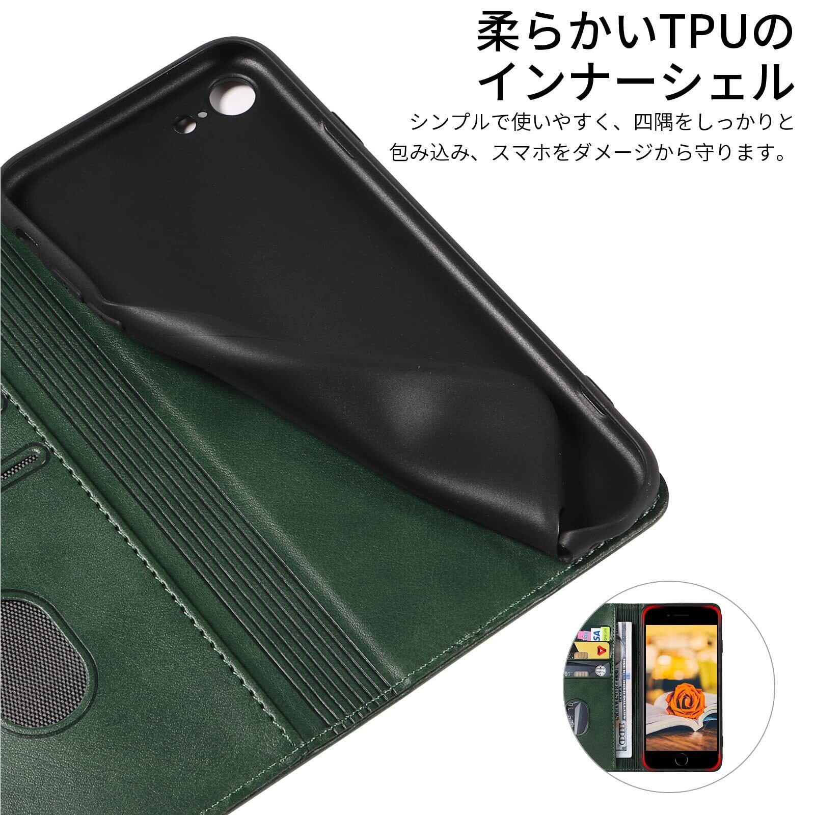 iPhone SE ケース 第2世代 第3世代 iphone8/7 ケース 手帳型 スマホケース 携帯カバー PUレザー カード収納ケース マグネット式 スタンド機能アイフォンse 4.7インチ対応 360度保護 PinLiSheng (ダークグリーン, iPhone SE2 iPhone SE3 iPhone8 iPhone7)
