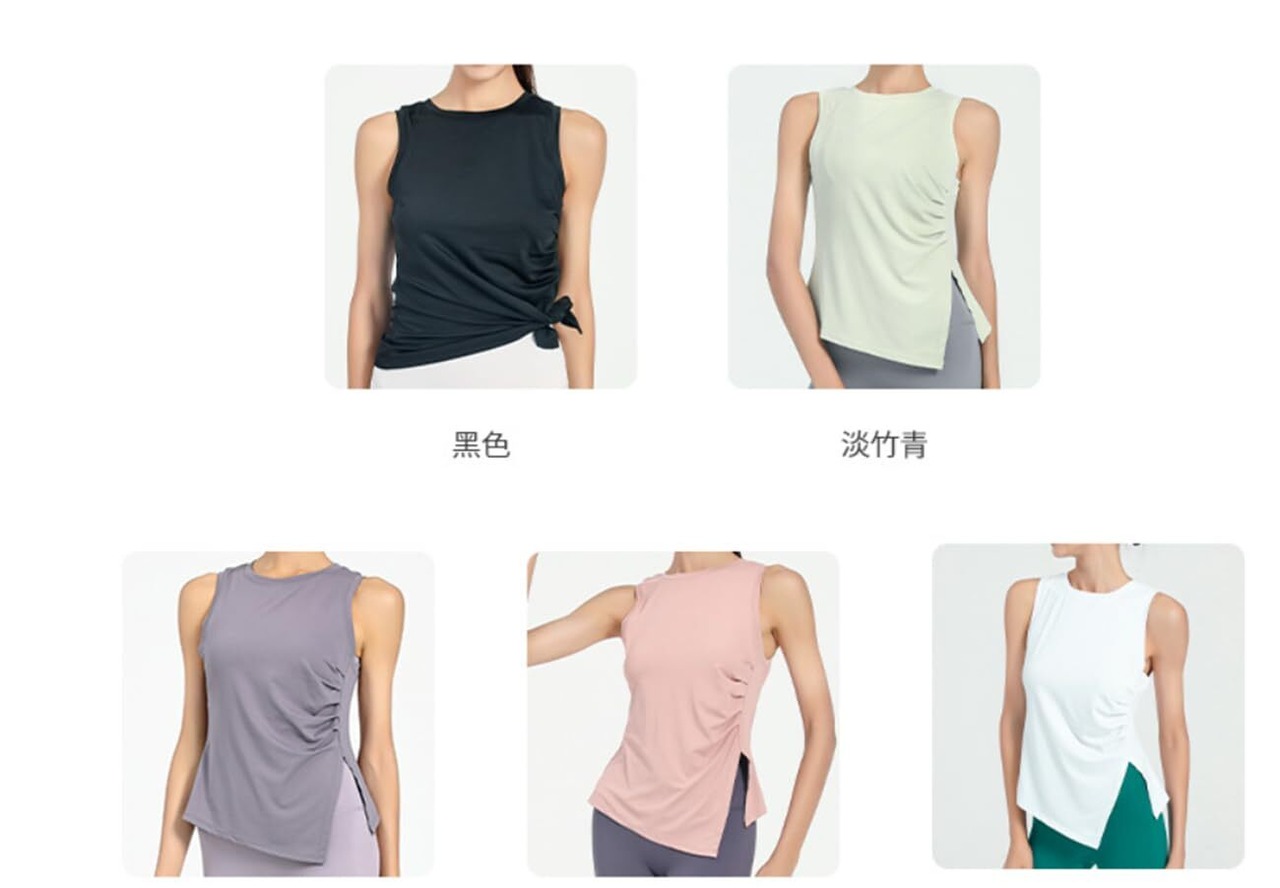 ふんわり長めのトップスで、体型カバーにもなるノースリーブ。身体を締め付けないゆったりとしたヨガウェアなので、ノンストレスな着心地です。やわらかな素材で肌ざわりも◎